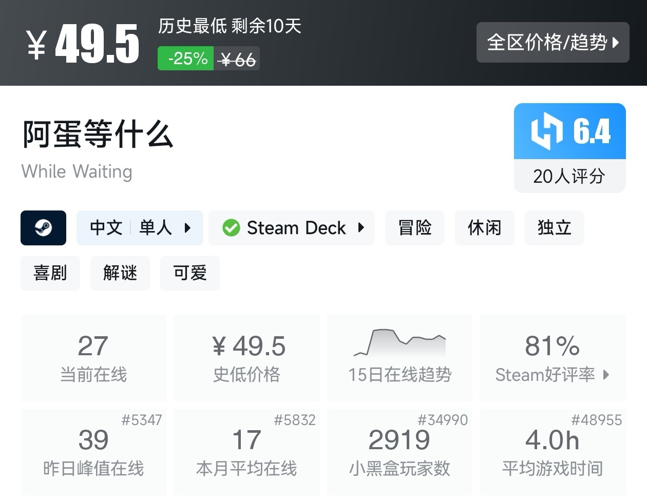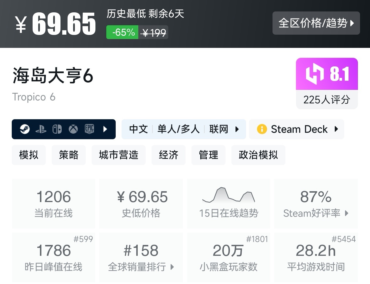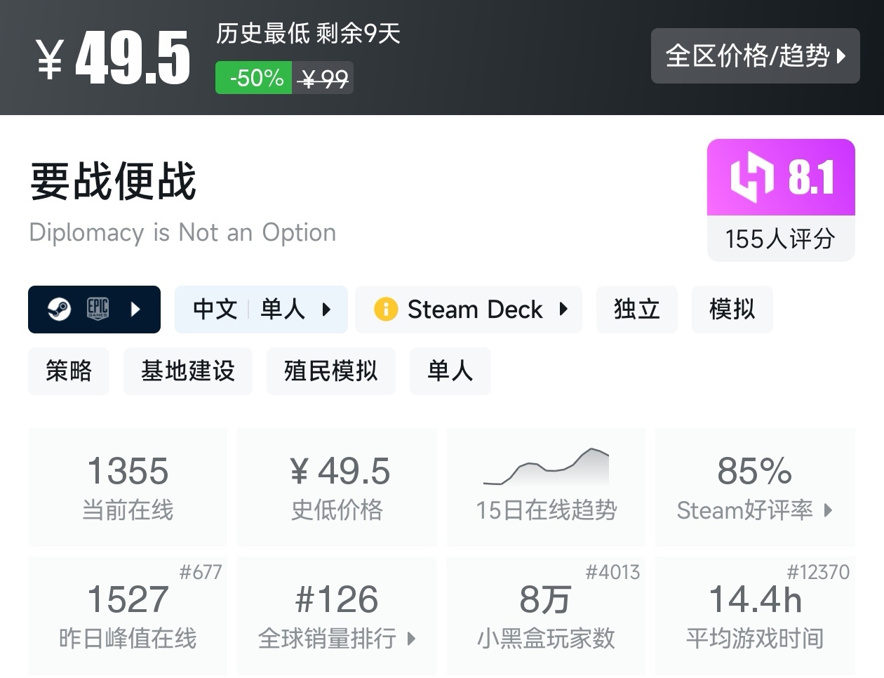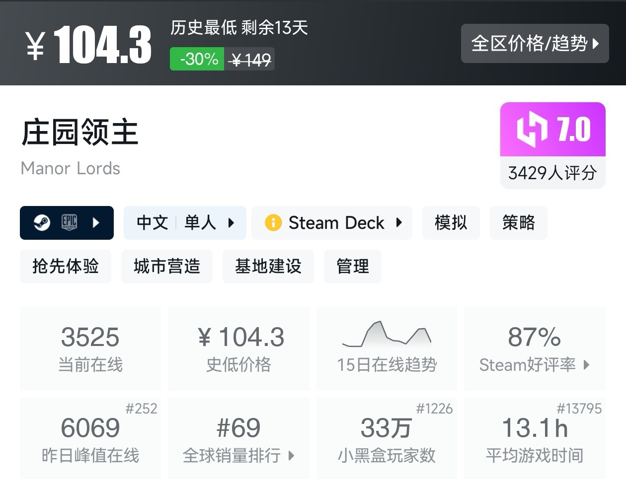 大家好,沒錯,又是我,你們的老朋友亦然,最近城市營造與殖民模擬遊戲節已經開始,有很多遊戲都參與了打折,當然有很多的史低遊戲,繼各位盒友的反饋後,我做這期史低遊戲的彙總,很多人都喜歡史低,希望我的彙總,能夠幫助各位盒友挑選心儀的遊戲。
