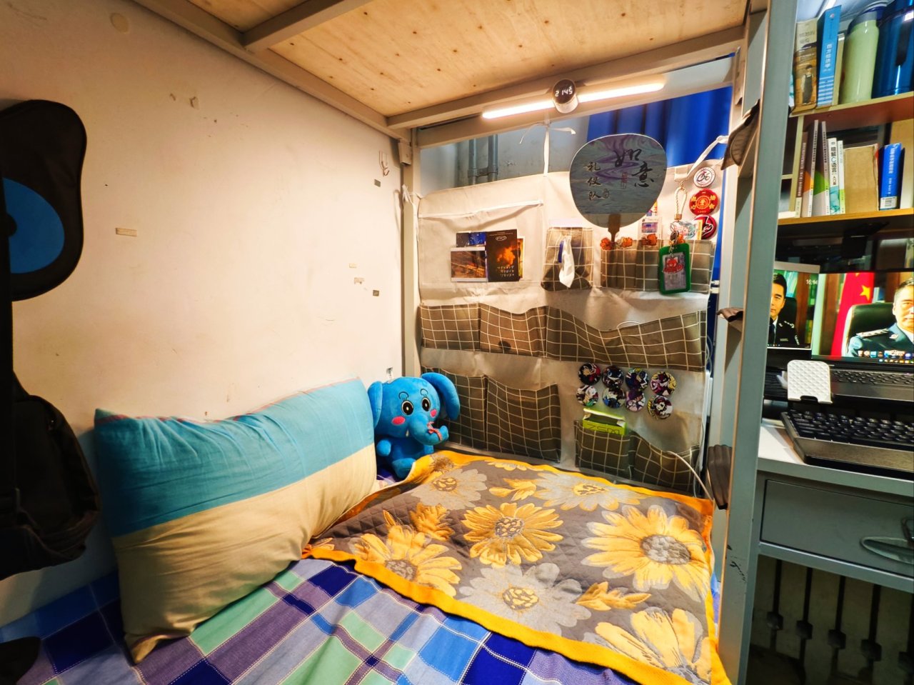 座標北京某大學,24級,剛到宿舍天都塌了,8人間(住7人,兩排,四張上下鋪)中間是一排很窄的桌子,過道極狹,才通人