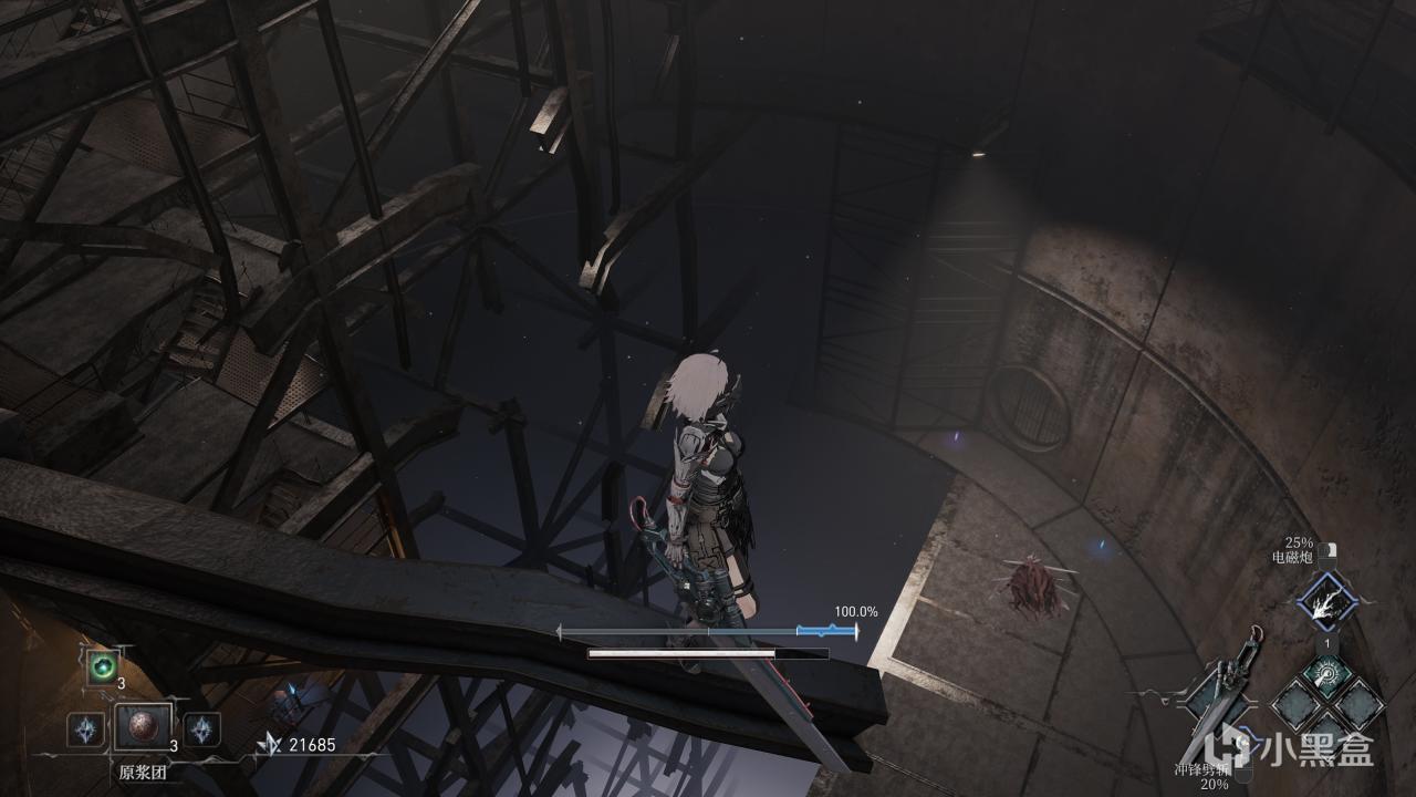 第一章还是设计了一个挺有意思的箱庭,比如眼前这个大机器人身后是隐藏区域:储水室,我们一眼可以看见下面有精英看守的宝物,但是没法直接下去,后续可以获得钥匙,然后共有三种方式进入这个秘密区域。