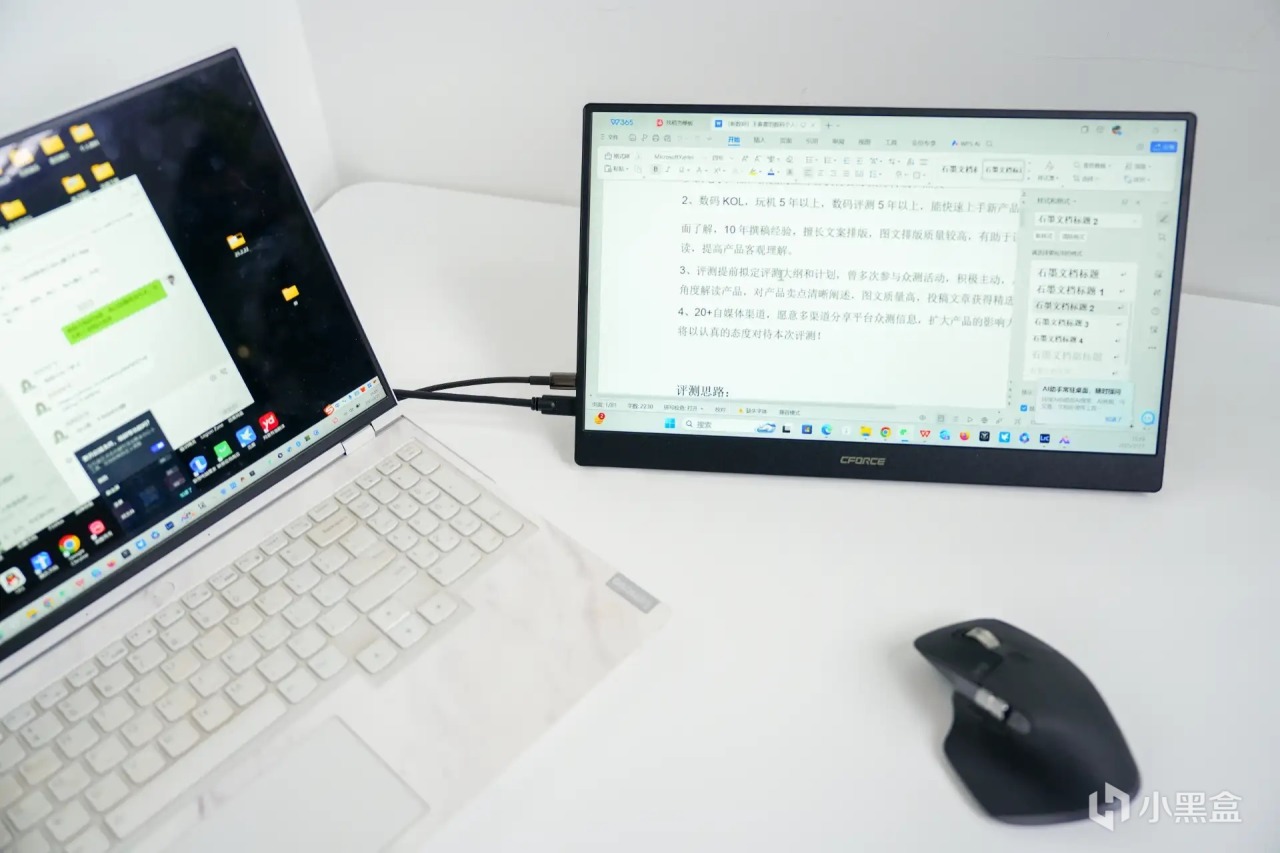 2. 筆記本雙屏辦公:無線模式下,延遲幾乎感知不到。我習慣主屏寫稿,副屏開查資料+微信,效率直接翻倍。有線模式則支持Type-C一線通(供電+信號傳輸),適合需要長時間渲染視頻的場景。