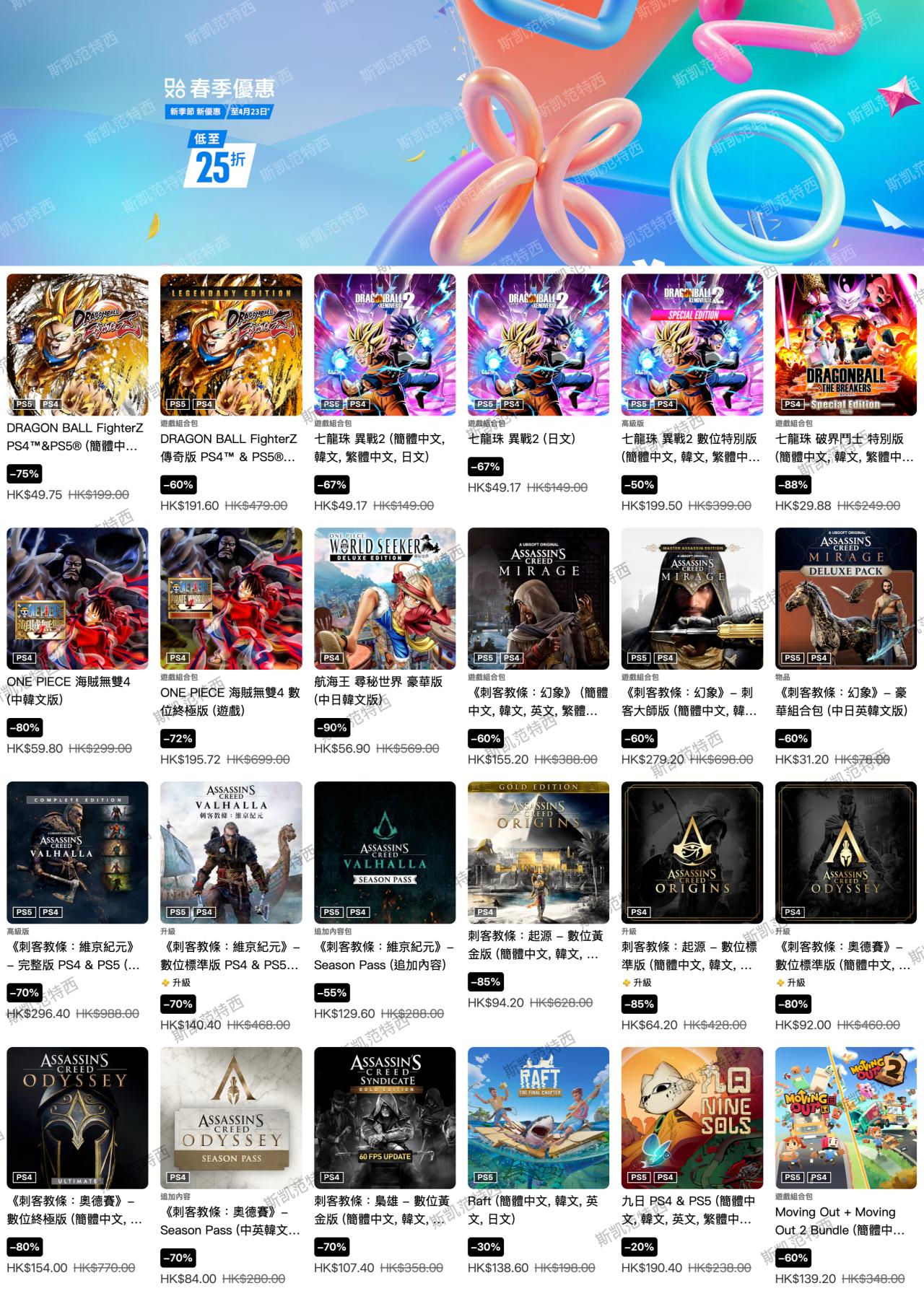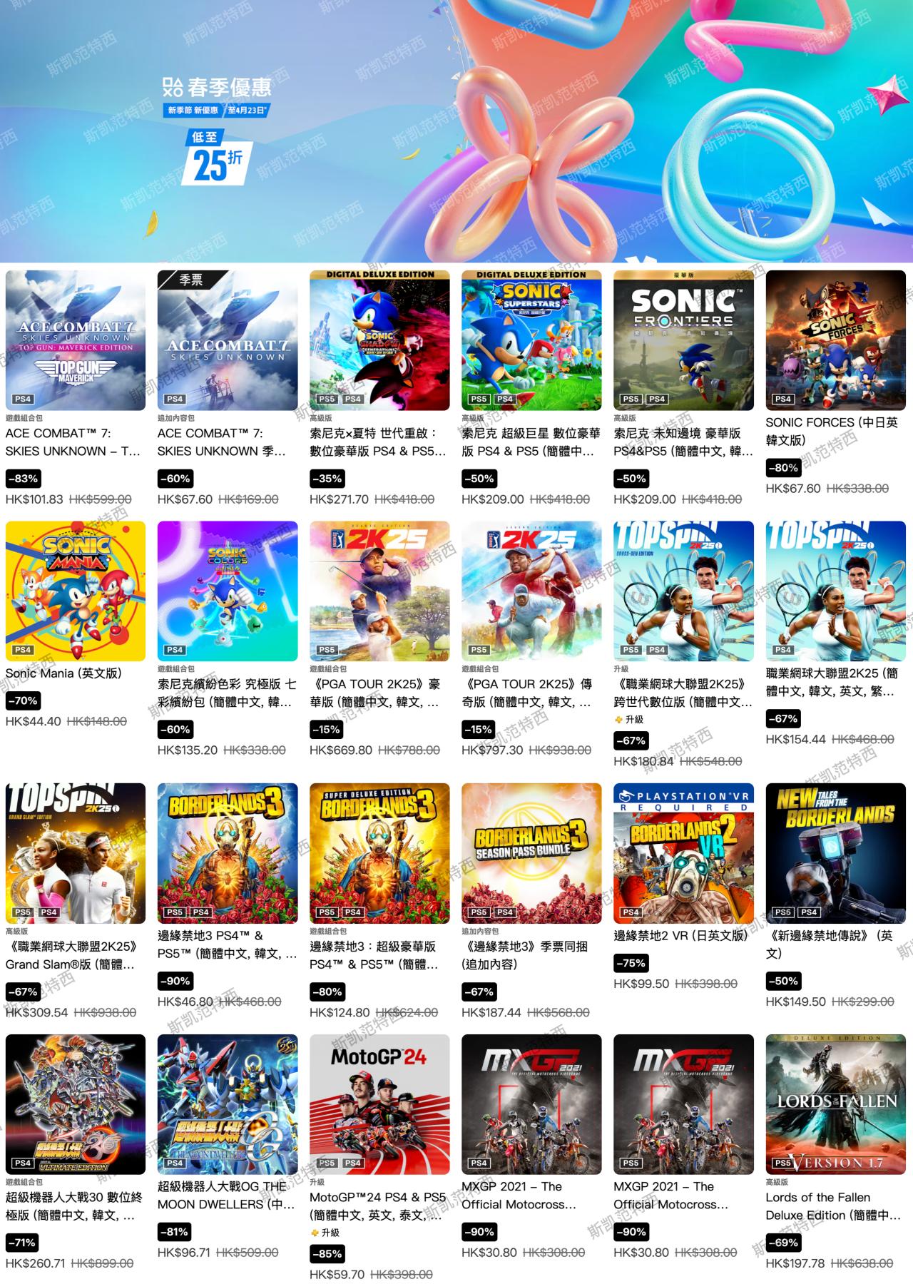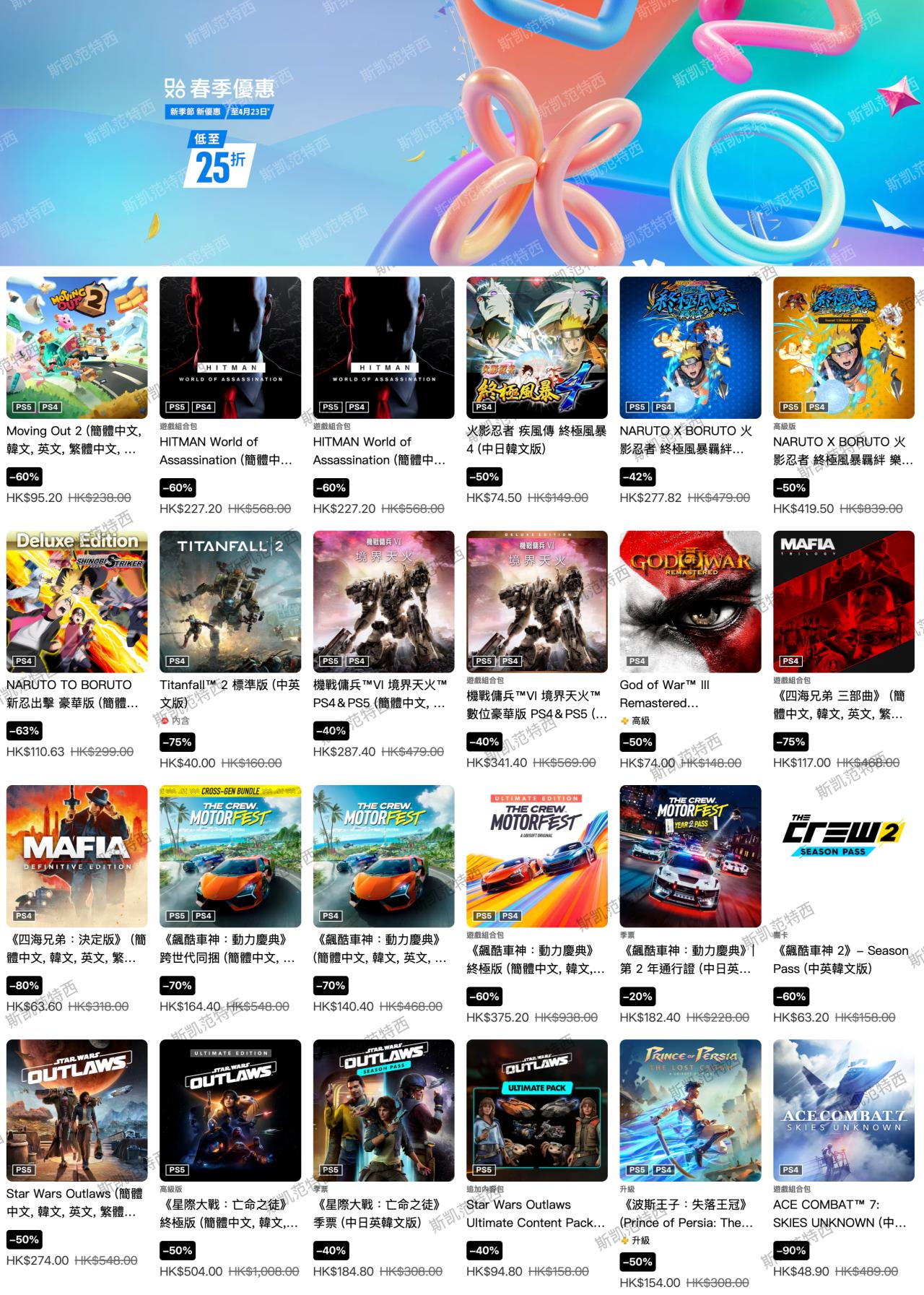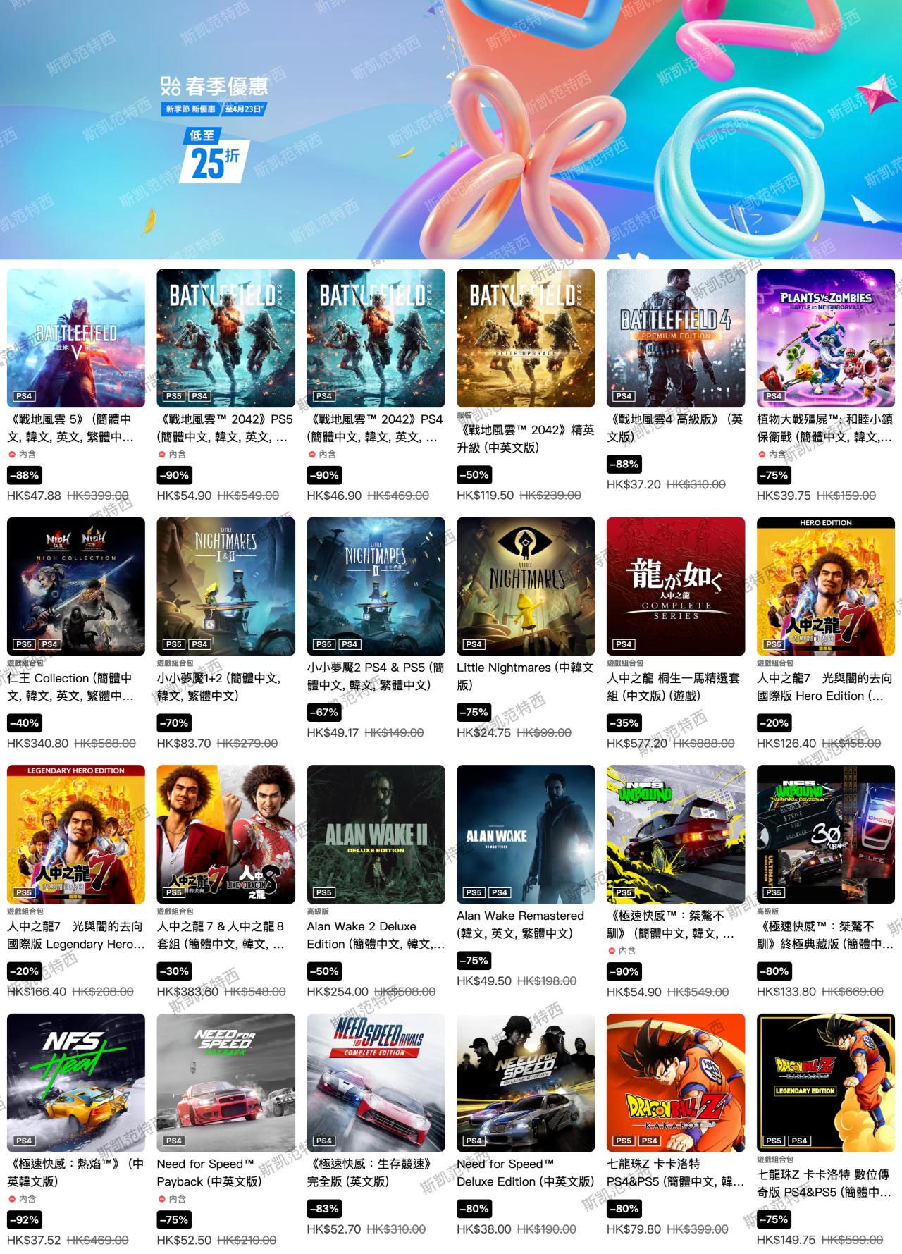 索尼PlayStation港服商店現已開啓春季優惠,本次遊戲優惠截至4月23日,有需要的朋友可以關注下。
