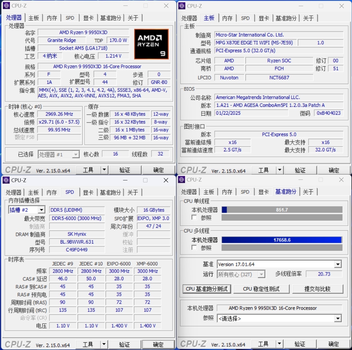 这次测试也是入手了AMD刚刚发布的RYZEN 9 9950X3D处理器,搭配MPG X870E EDGE TI WiFi 刀锋钛主板跟大家分享一下性能测试部分的成绩。毕竟好U配好板肯定也是多数玩家的首选。