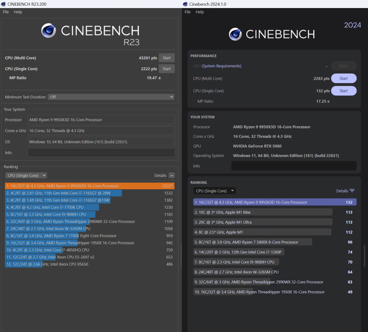 CINEBENCH R23/2024测试: