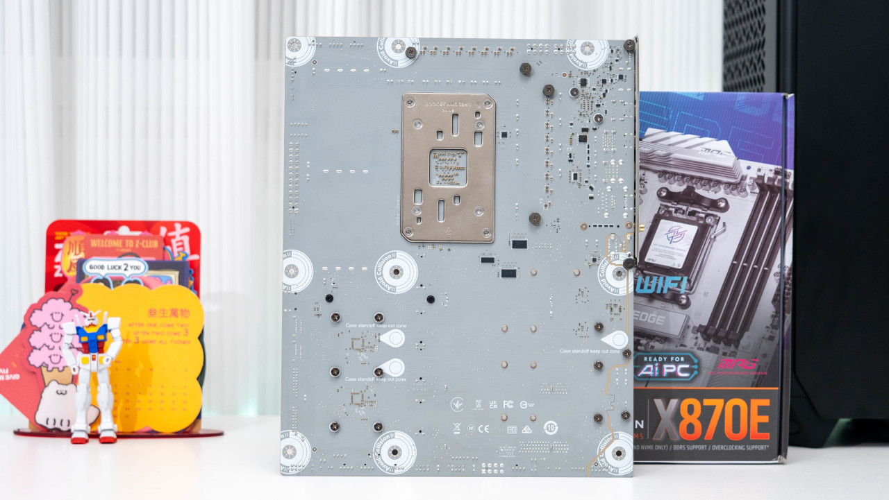 主板背面一览,整体采用了灰色的喷涂,采用了8层服务器级PCB设计。