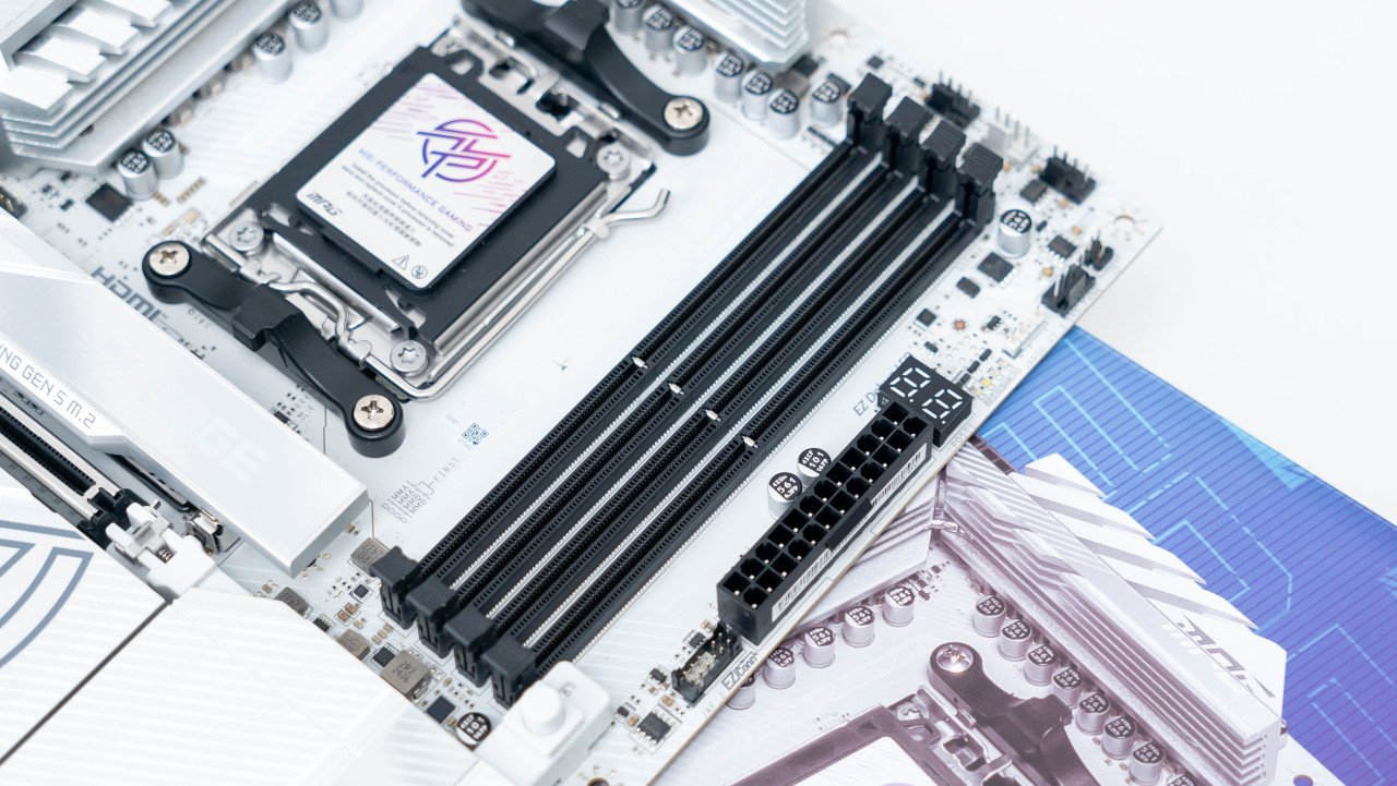 最大支持256GB的DDR5内存插槽,可以满足一次插满四根64GB DDR5内存的需求。对于四根内存插满的兼容性提供更好的支持,而且还支持AMD EXPO一键超频,配合微星的Memory Try It!功能可以让内存的读写以及时序进一步优化。