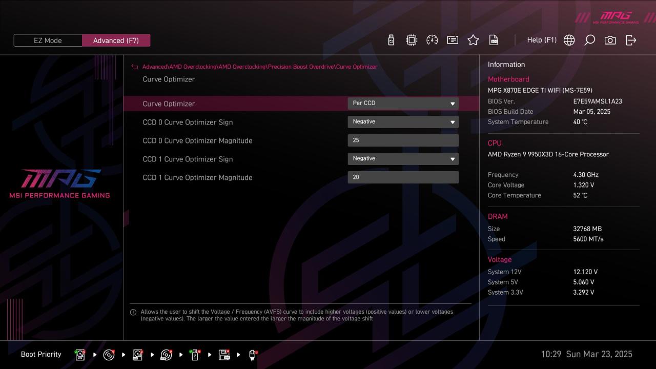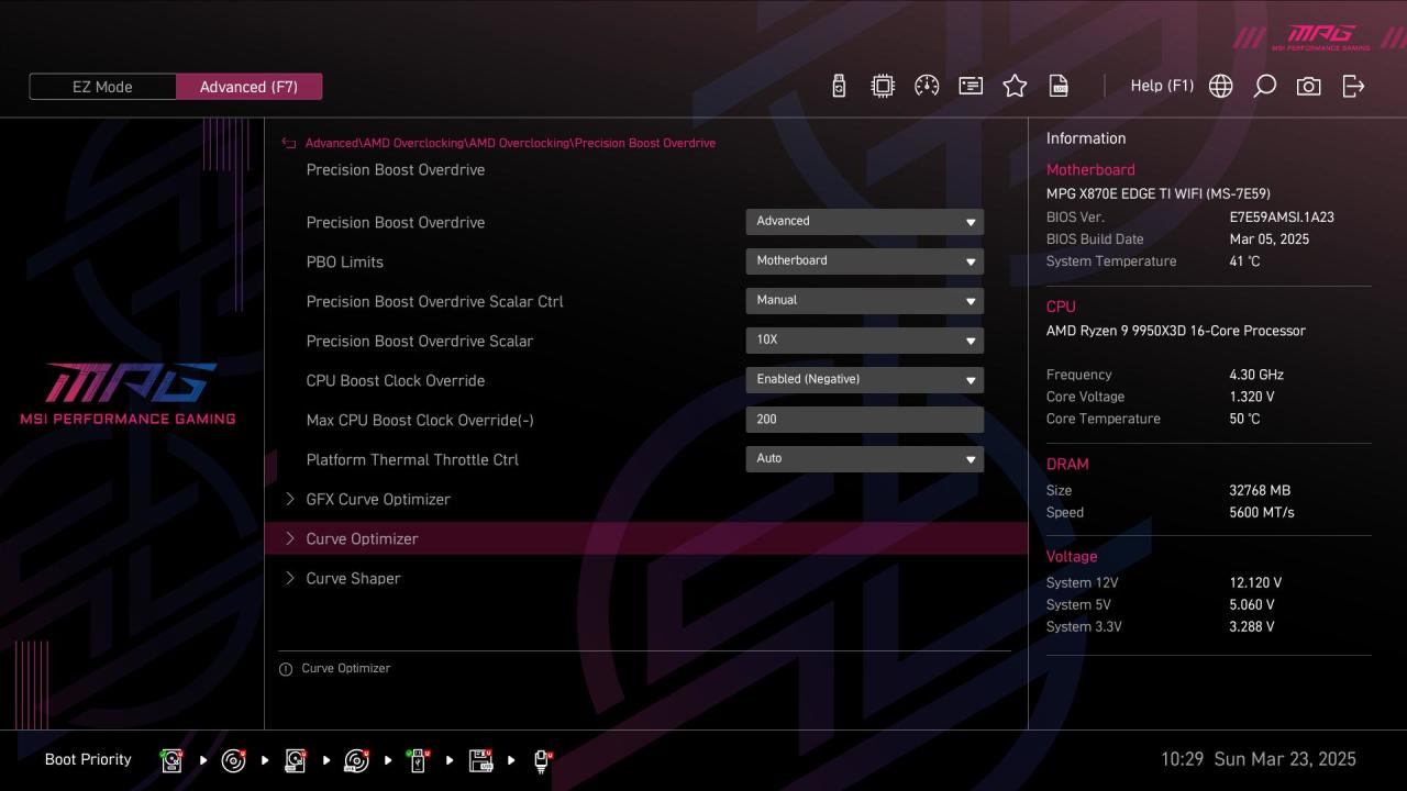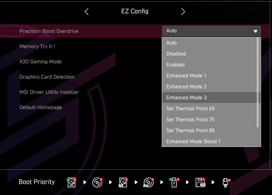此外像是AMD玩家必开的PBO模式选项在EZ界面也可以快速找到,而且微星还提供了多种PBO预设供玩家选择。