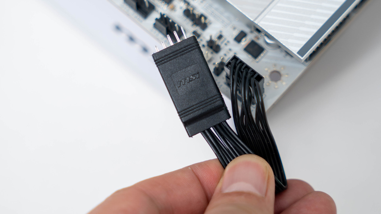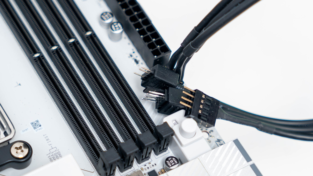 24Pin 主板供电接口一侧还有一个少见的EZconn三合一扩展接口,通过这个接口可以扩展出像是5V RGB接口、4Pin风扇接口以及USB接口。