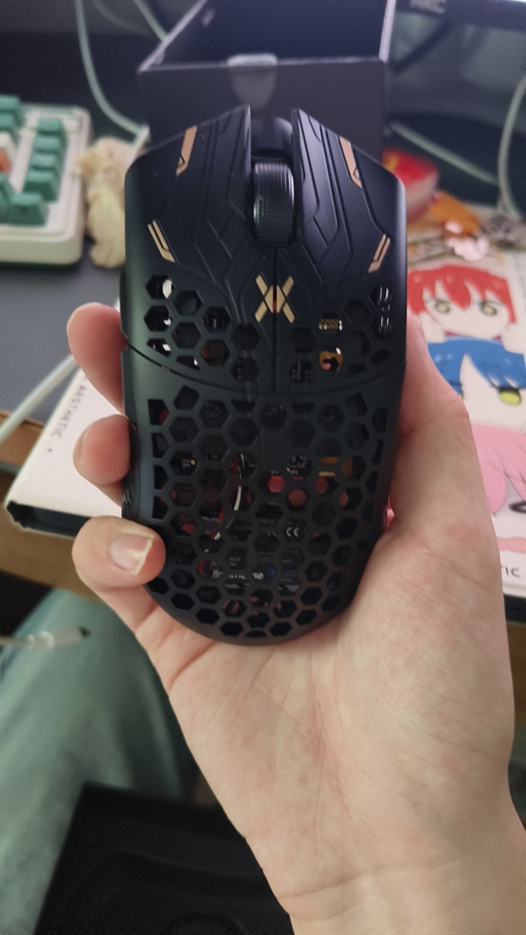 來了來了,她來了,電競的頂點,潮流的巔峯,雖然我品控一坨按鍵蓋亂晃,但我是minise,雖然我超大打孔背部無支撐還能有49g,但我是minise,雖然我自信定價黃牛倒勾狂歡,但我是minise,哎呦喂,毒蝰minise大人,咱邁從,ATK,艾石頭,達摩鯊給您請安啦(無惡意,我對這些性價比品牌還是挺有好感的,只要別碰瓷營銷就行,碰瓷營銷是真的噁心)雷蛇純純爲了割韭菜而出的產品,前段時間還換個顏色又割一波,搞笑來的,雖然有着不俗的性能,毒蝰mini的頂級模具,但這價格,其實能花2000多買個鼠標的也不太需要在意這些,可是這用着也不舒服啊,那按鍵蓋晃的我都懷疑它要脫離了,背部那麼大一塊鏤空剛好把貼手背的地方鏤沒了,整個手掌就懸在那,比起抓握可能更適合指握?2000的鼠標做成這樣,多半一開始就沒想着讓你用,建議買來直接供在那,每天上一柱香,說不定雷蛇尊者會讓你的隨機彈道直接隨到對面頭上呢,但潮是真潮嗷,都要潮出水了,不建議爲了外觀潮流去購買,有錢隨便,評價爲電競潮男的玩具和收藏品,使用價值不大,可以爲用而用罷了,如果是衝着這個模具的話不如看看同模具的pwnage cf或者萬靈