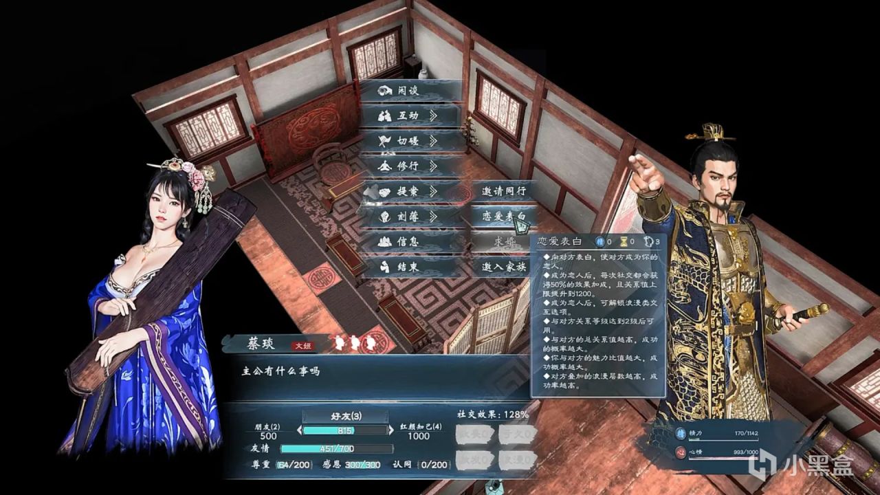 通过送对方喜欢的礼物提高社交兴趣,是快速提高关系的好方法。此外,游戏中可以获得各种话题,将这些话题与其他武将分享时,可以提高心情,增进双方关系,并获得一些六维经验。