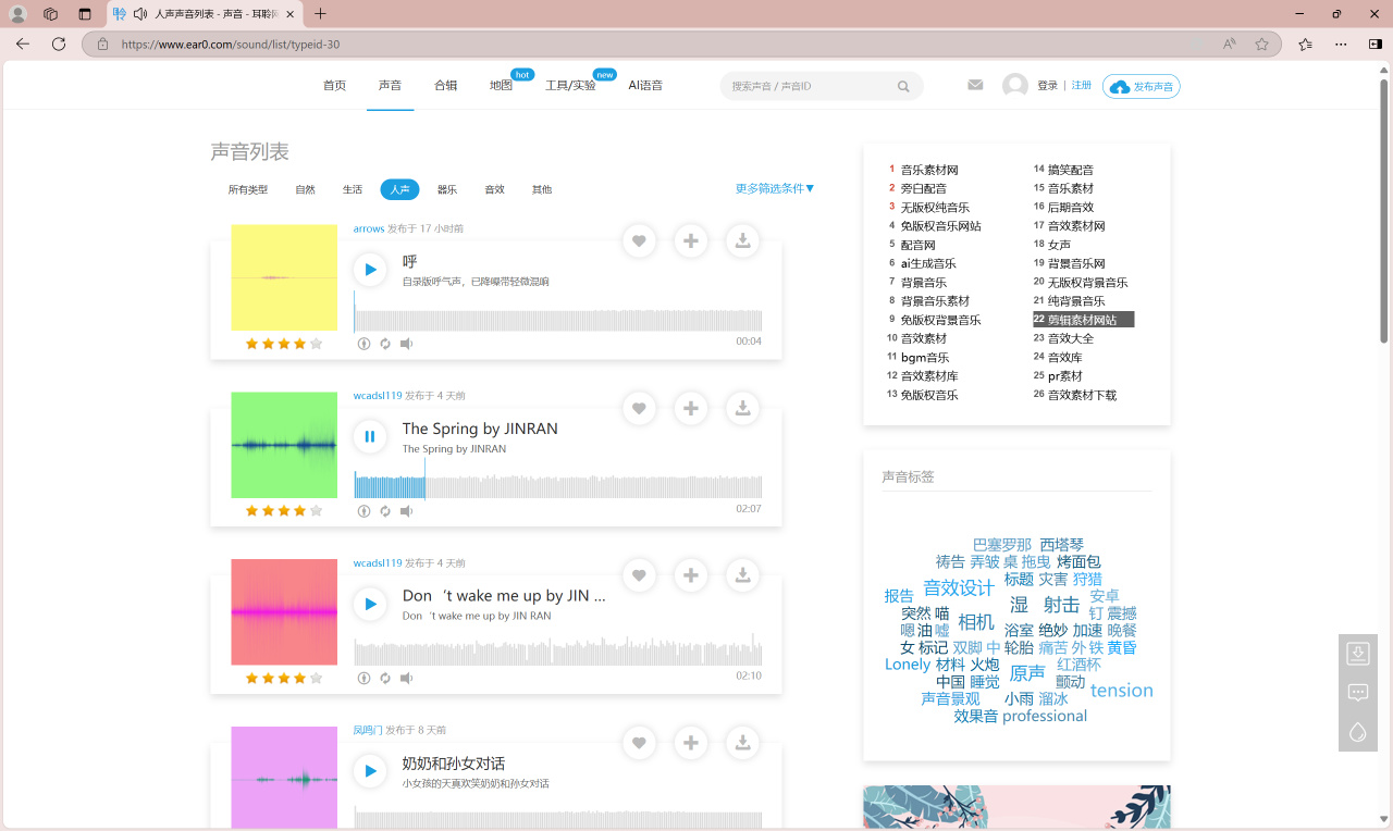 這個真的給我深刻的印象,主打一個好玩新奇,感覺無聊去探索很好玩,很有意思,裏面有許多免費音效素材庫,涵蓋自然、生活等場景音效,遵循 CC 共享協議,適合視頻創作者,音質方面也還可以,推薦推薦