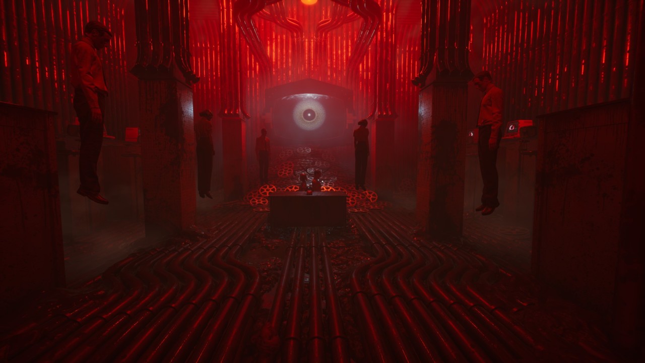 游戏中的场景设计值得我们单独谈谈。在初入游戏时,游戏的场景设计带给我一种《心灵杀手》的感觉。制作组擅长利用场景来表达故事的情绪,比如作为一个反乌托邦的世界观,利维坦公司监视着每一个民众的生活,监视这一概念,在游戏设计的场景中十分常见。而表现的方式就是眼睛,制作组设计了许多宏达的游戏场景,这在游戏官方的宣传片中能得到体现。眼睛这一元素甚至在游戏中的某一小节中,成为了主要的解密要点,具体的内容我就不做剧透了。