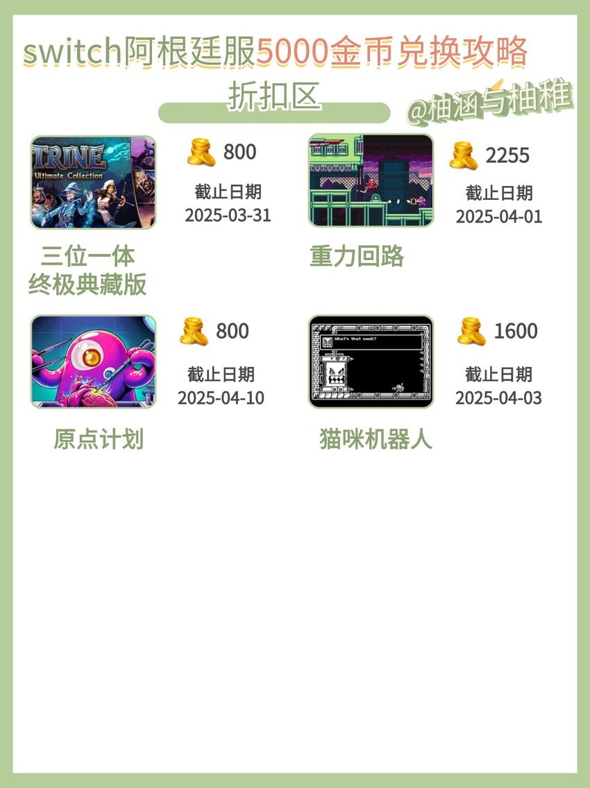 从本周开始,进入清金币阶段了,毕竟之后的新游戏不会给金币了,本周九张羊皮纸、刺客信条,还有之前玩家蹲的三位一体 终极典藏版都有折扣,手里的金币可以清一波了,避免过期。