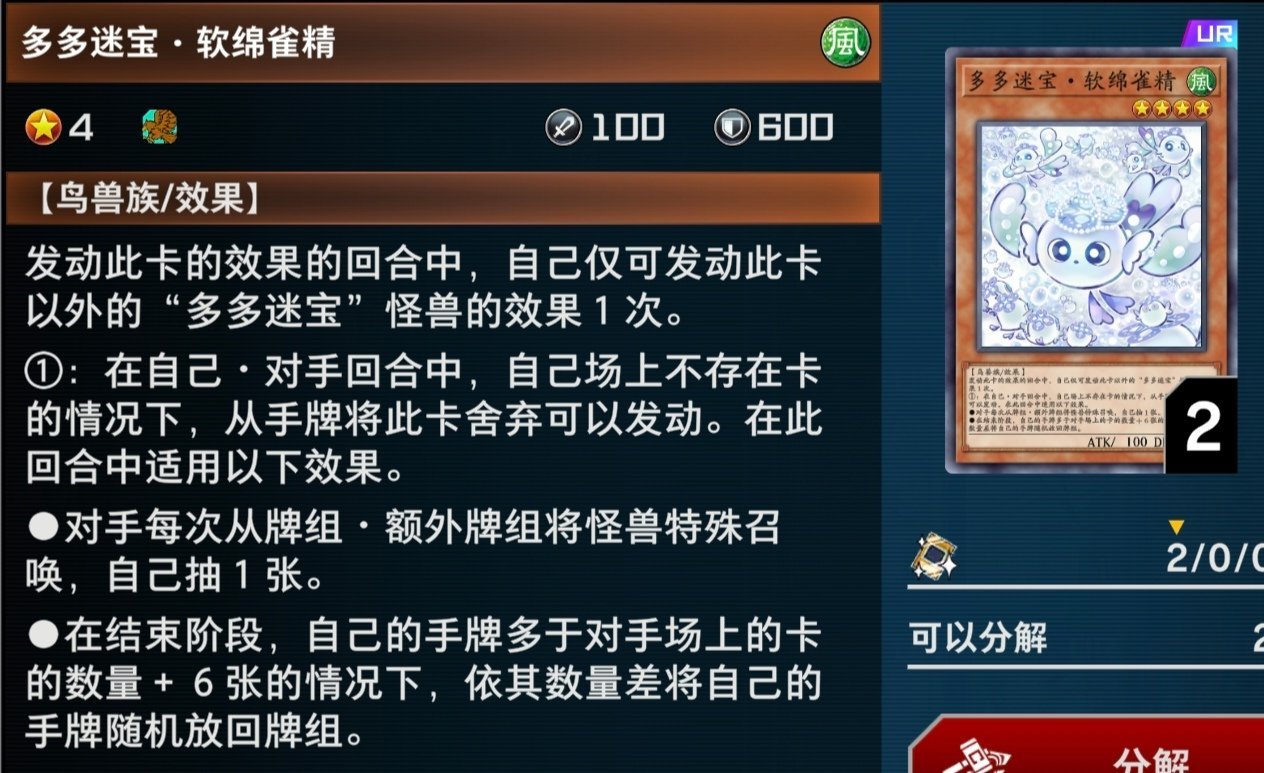 泛用性強大,先手可蓋放給對手壓力,後手空場可給出難以無效的一阻抗。能否投入三張泡影是檢驗一副卡組是否能躋身競技的可行標準,我們可能不是競技卡組,但能消化三張泡影的卡組系統起碼是合格的。