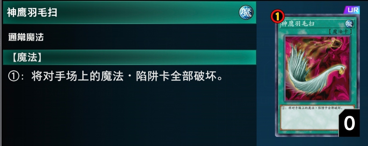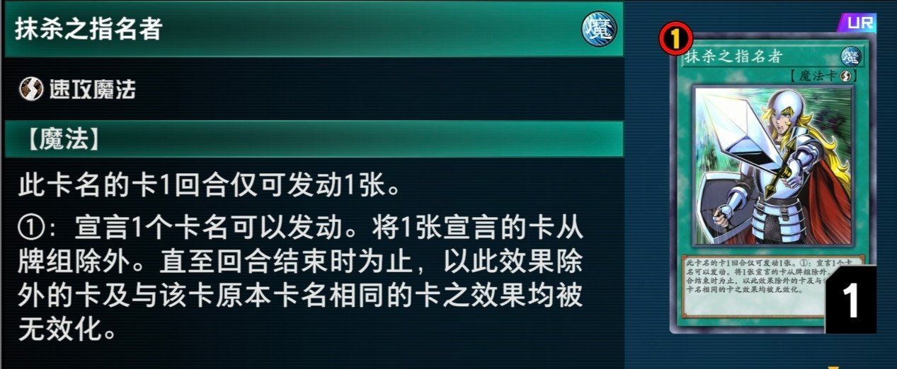 現代遊戲王的基礎護航,限①的無敵卡片,只要你卡組裏有跟對手一樣的卡片,就能連鎖給他除外並無效,現代遊戲王大家都下滿手坑,一劈一個準。
