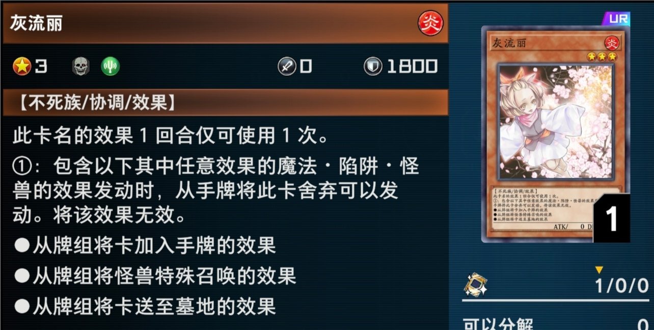 後手玩遊戲王的最大底氣,與「灰流麗」相依相存,它的通過意味着對手說書有了不小代價,在遊戲王抽一張就可能改變戰局。目前因爲太過強大,被限制②,空出來的卡位也有了平替。