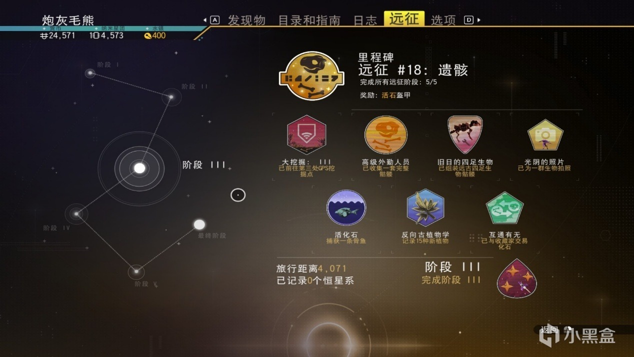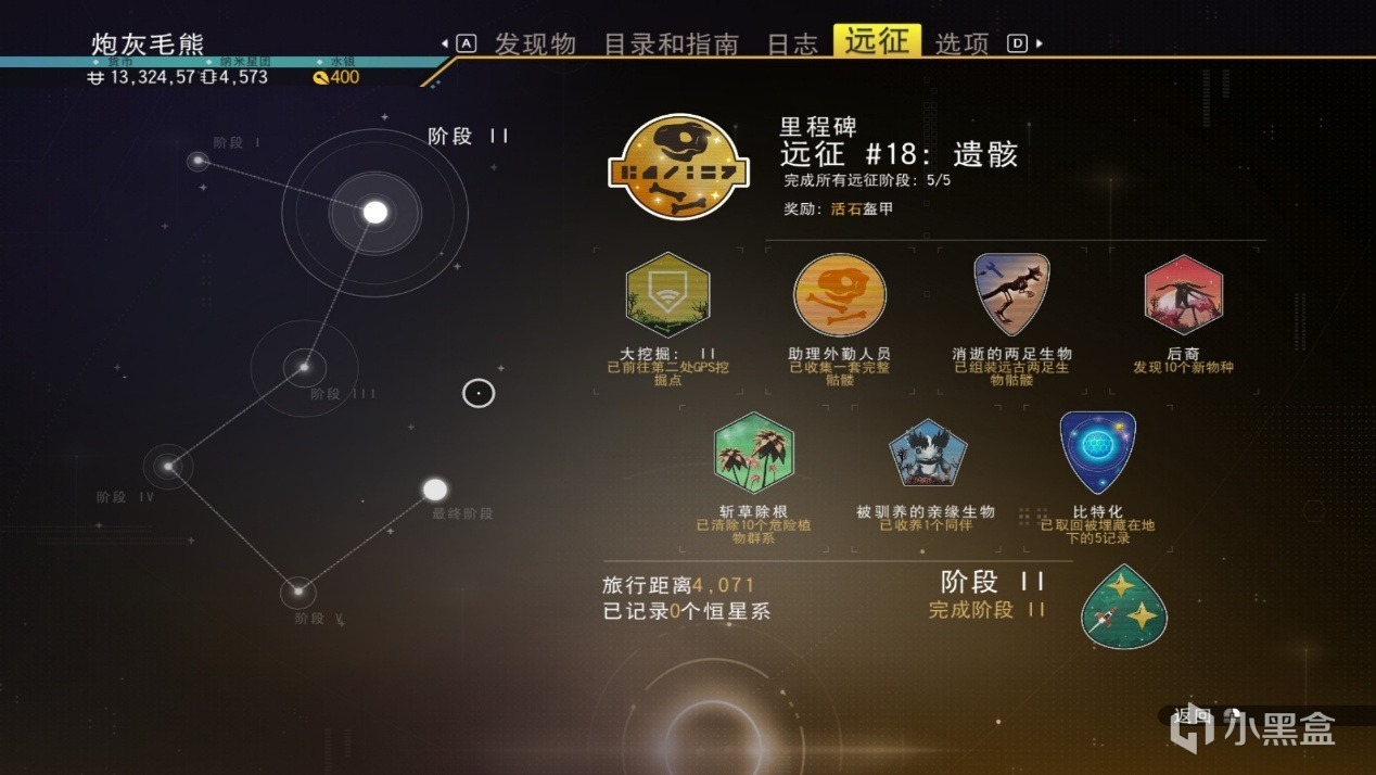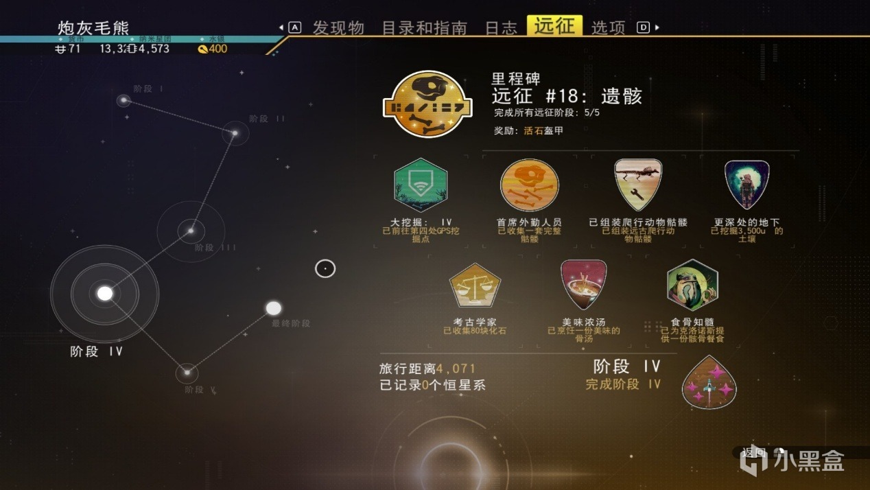 助理外勤人員(獎勵:啓動自動充能器、掃描系統升級模塊):提交任務的古生物學社和外勤辦公室位於同星系同星球,具體經緯度座標爲+14.15,+175.81。