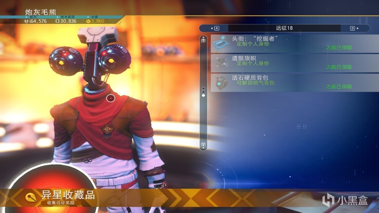 互通有無(獎勵:傳送接收器、飛船庫存欄位*5):本次更新之後空間站多了個化石收藏專家,在廢品收購者旁邊,跟他交易需要放入多一點化石以提高成功概率。
