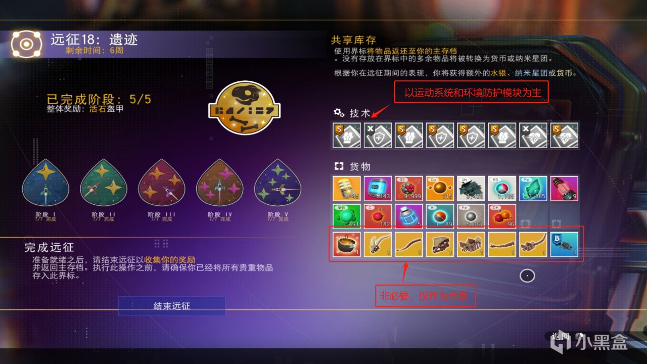 特別提醒:如有餘力,多帶點揹包或飛船的擴容模塊,或者將主存檔滿擴容的飛船複製過來,這次遠征需要挖大量化石,格子不是很夠用。