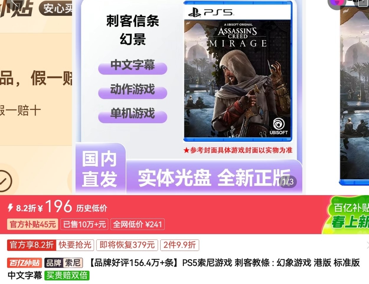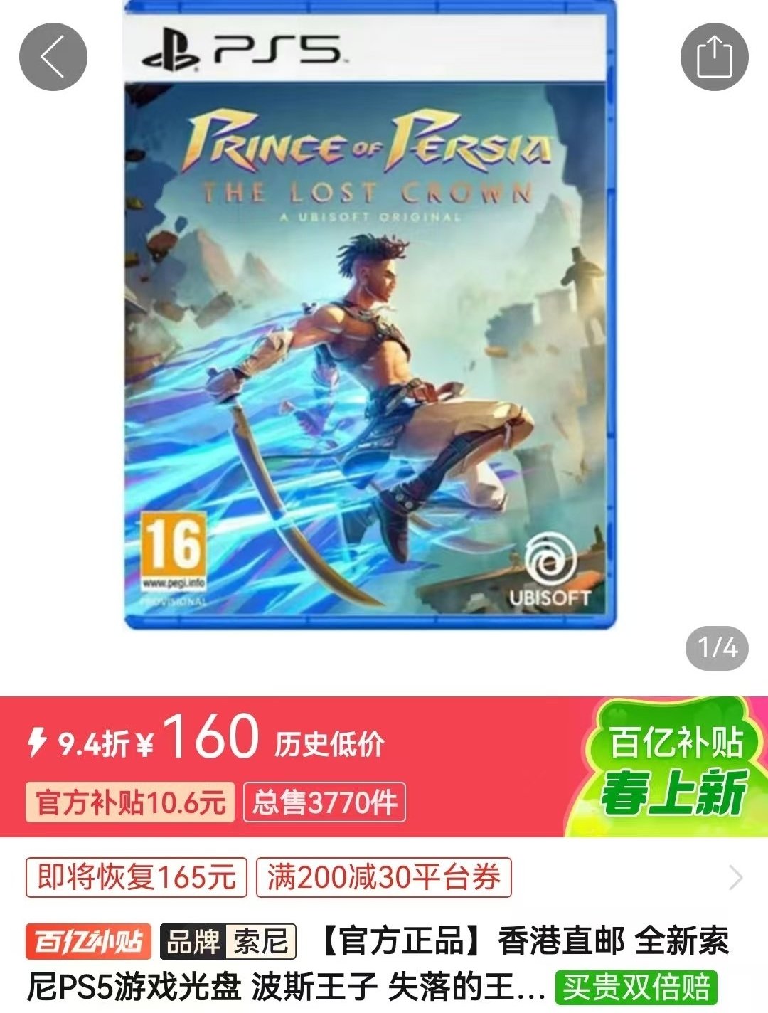 波斯王子自從入會免之後就一直在降,目前ps4版120+的價格也算合適,ps5版價格在160,有意向的可以購入。