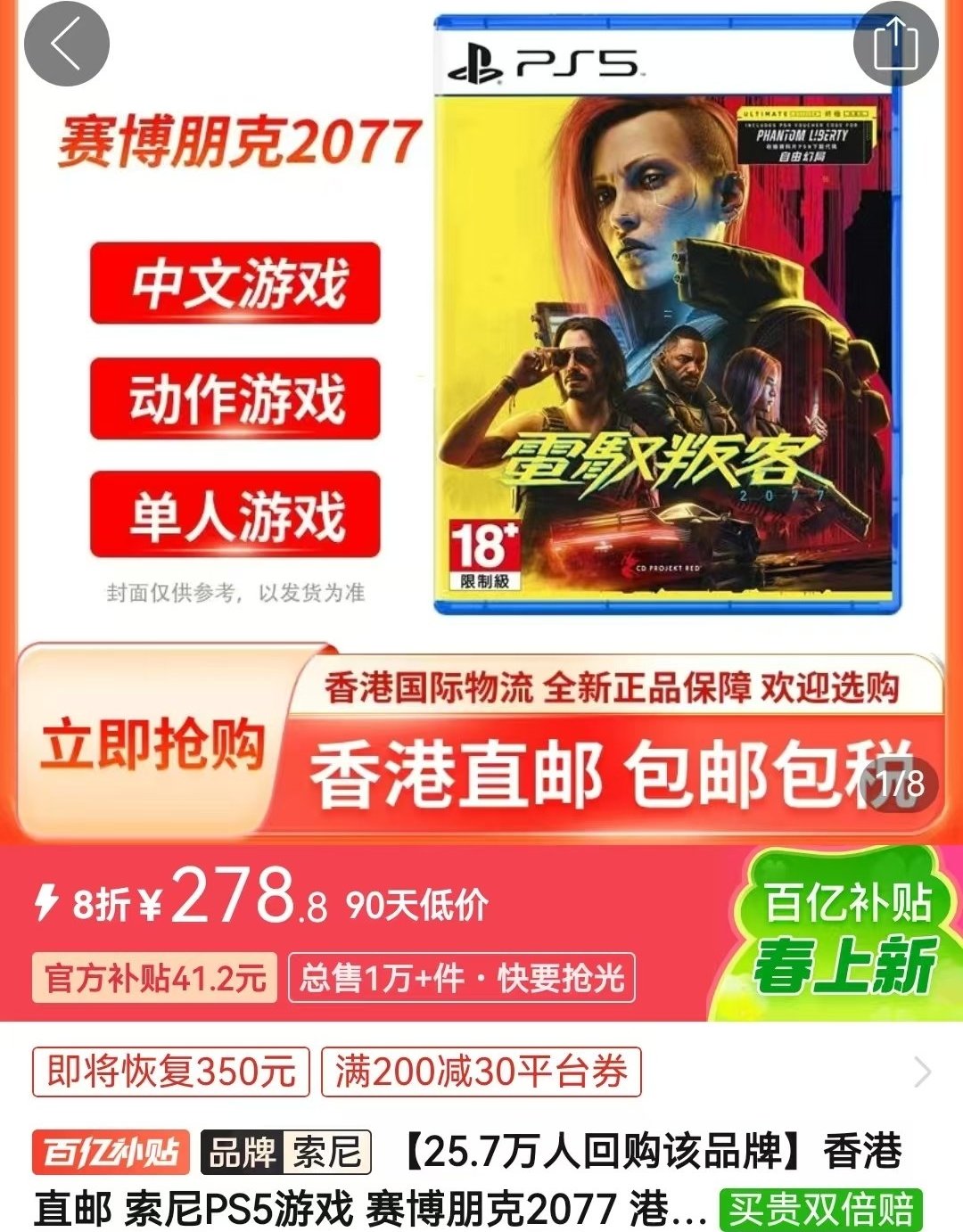 往日之影的含金量不用我多說了吧,用卷後價格來到了270+,個人感覺還是很值的,喜歡的可以購入!