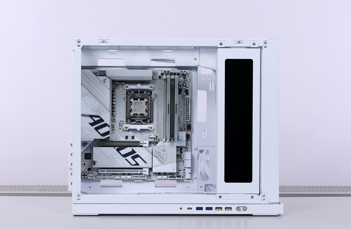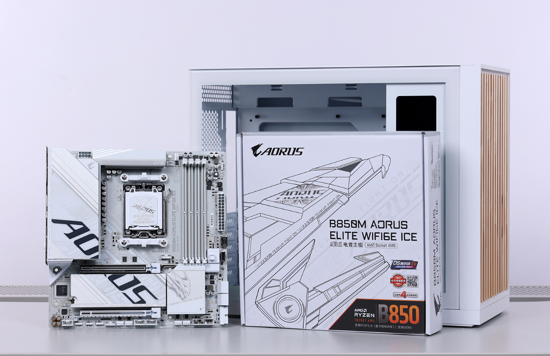 兼容性方面,機箱支持M-ATX/ITX主板,我們理所當然選擇了性價比更高的MATX主板,再加上全白的配色要求,最終選定的是這塊技嘉B850M AORUS ELITE WIFI6E ICE主板(冰雕B850M)。
