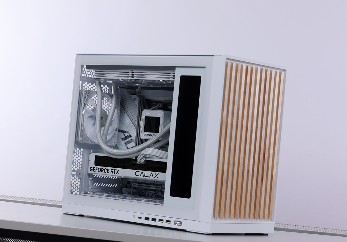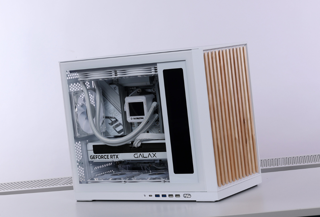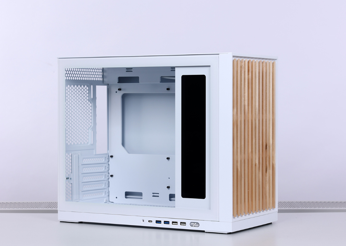 機箱前臉採用白樺木實木格柵裝飾面板,質感表現優秀,辨識度也直接拉滿。
