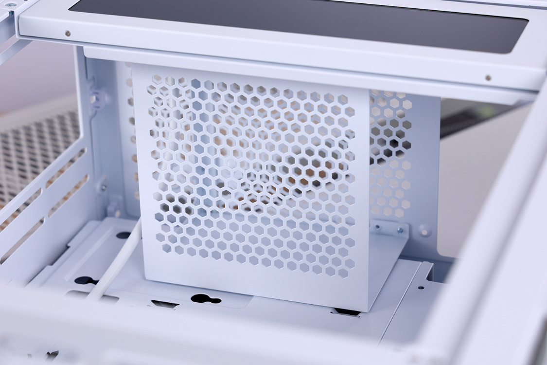 機箱至多支持安裝7把12025規格風扇。其中,電源安裝位下方的風扇位採用了與3.5寸硬盤孔位共用的設計,玩家除了可以在底部安裝3把120mm規格風扇以外,也可以安裝2把120mm風扇和1塊3.5寸硬盤。