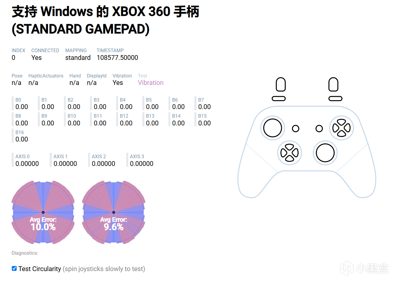 至於內圈死區這款是默認設置了百分之十中心死區的,想要零死區的話長按ls+rs五秒等待手柄震動即可調到零,開啓零死區後最大偏移也僅僅只有0.01845這個表現也算相當不錯了。