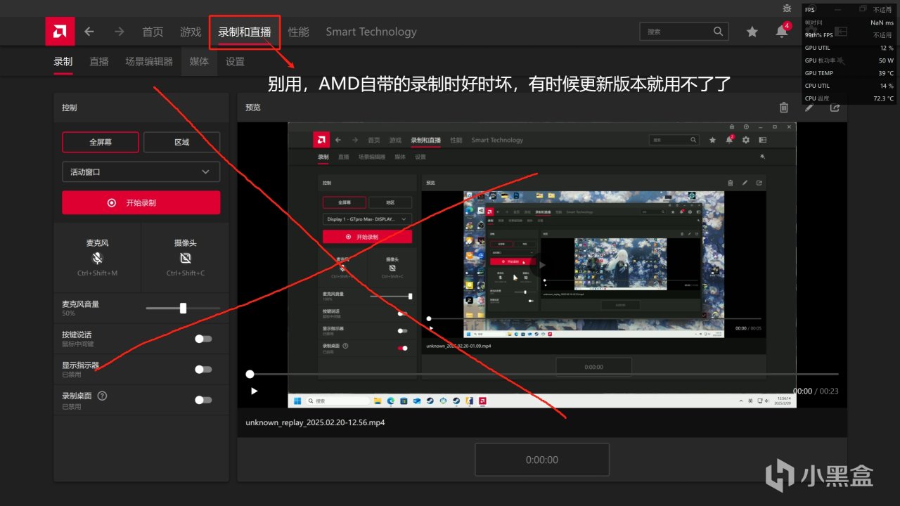 7.AMD自带的录制不建议大家使用,有时候今天能用明天又不能用了,或者更新新版本就用不了了