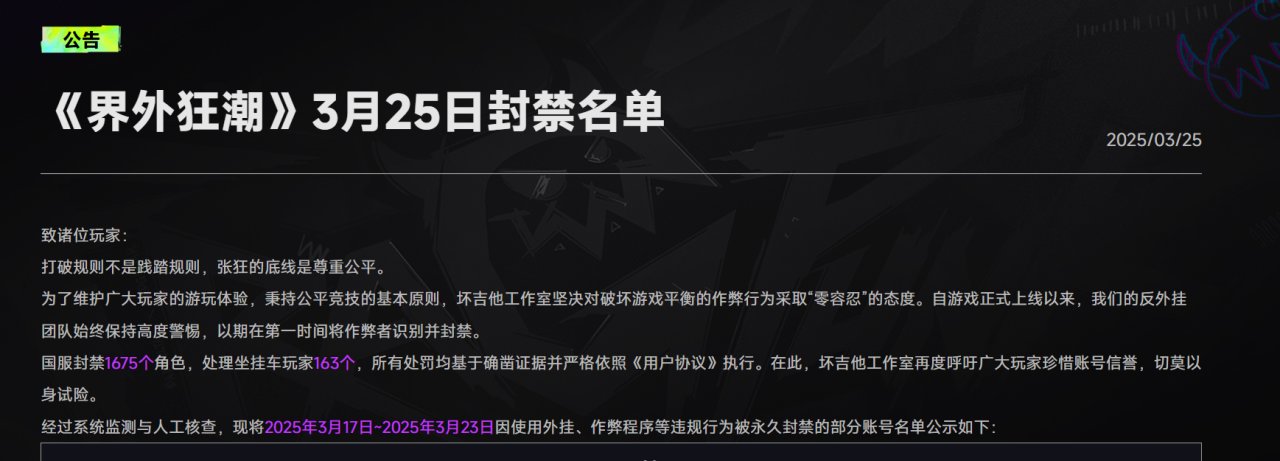 界外狂潮近期更新彙總(內涵卡上線,dx12上線,封禁1675個號)