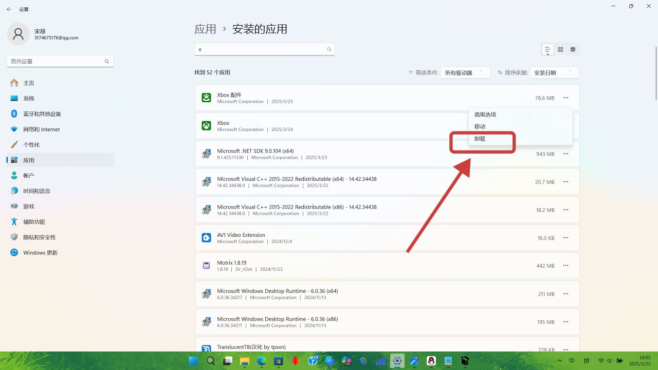 首先我们如果安装过Xbox Accessories就去设置里把他卸载了,在设置里他叫Xbox配件