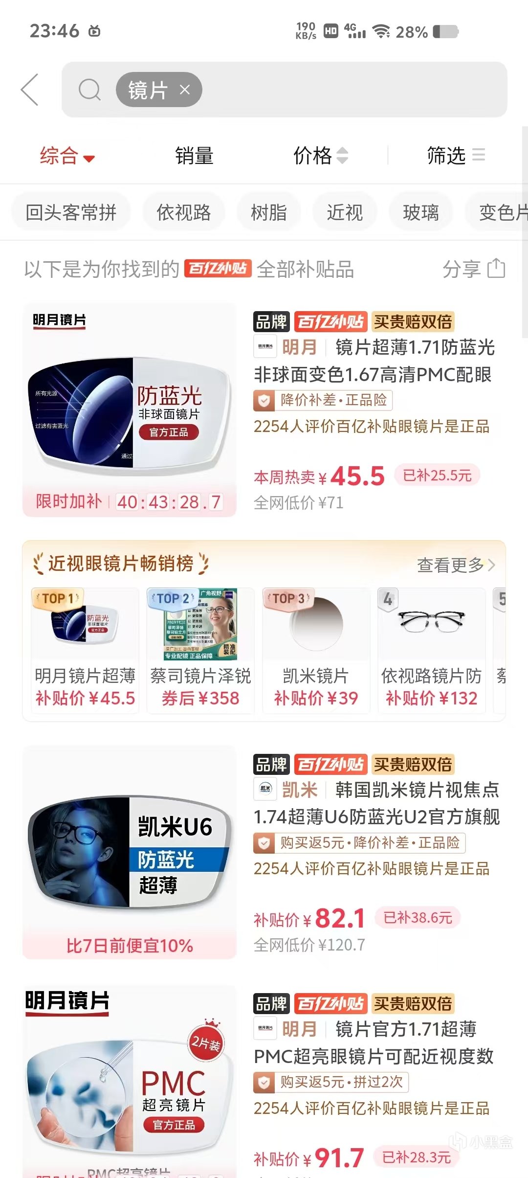 2.PDD(不是廣告)進入百億補貼,搜索鏡片