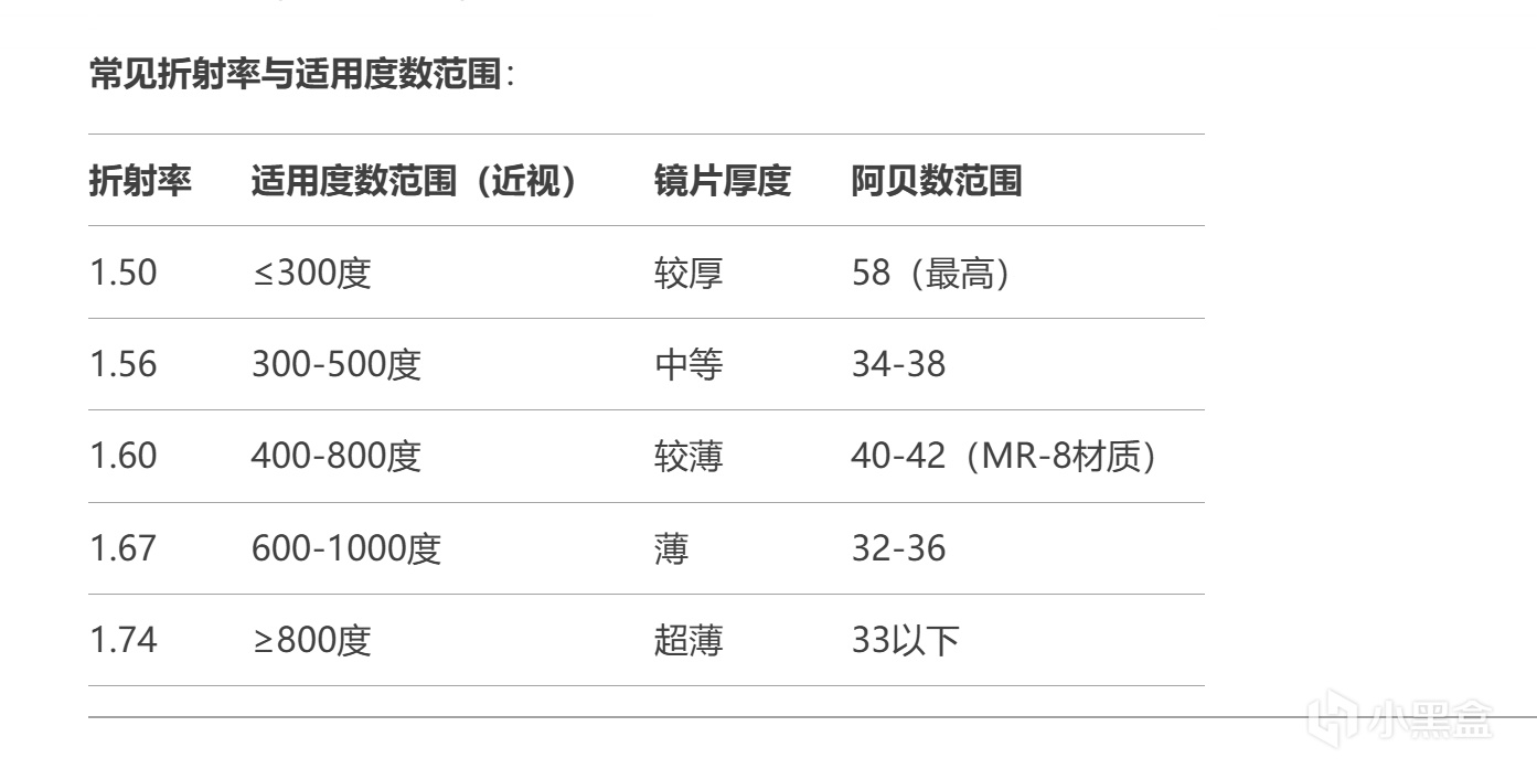 簡單來說就是阿貝數越高,眼鏡看的越清晰,折射率越高,鏡片越薄,阿貝數越小