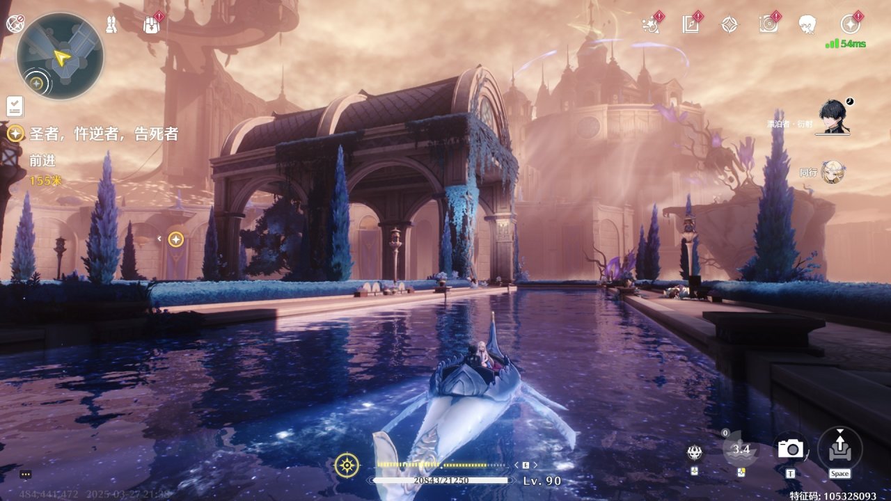 震撼华丽的倒悬宫殿,遮蔽世界的云海,星空中流行划破天际,毫不夸张,这已经是我在二游里看到的最好看的场景了。(甚至有种生化奇兵3中到达哥伦比亚的感觉)