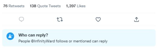 值得一提的是,IW把上述更新推文的評論區關閉了。
