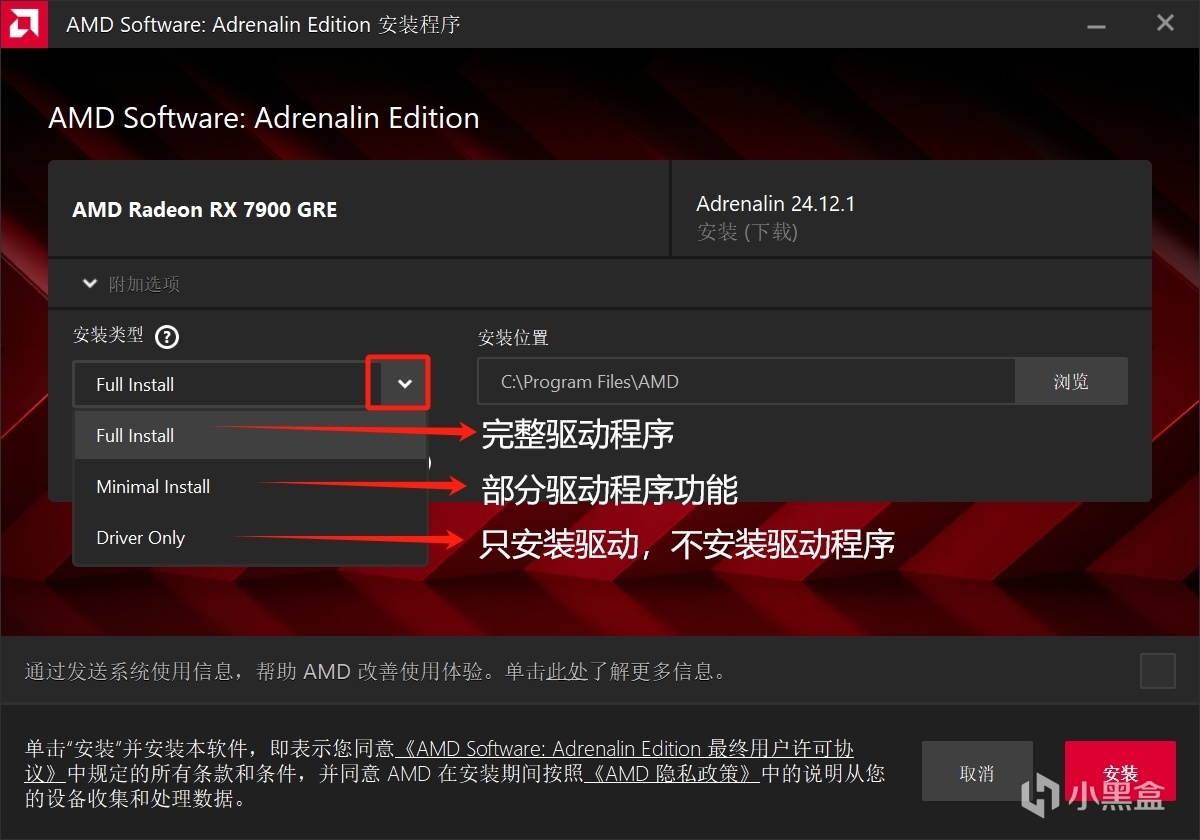 7.點擊下載下來的安裝程序,推薦選擇恢復出廠設置,根據自己的需要選擇要不要安裝AMD的驅動程序應用(個人建議安裝Full Install)