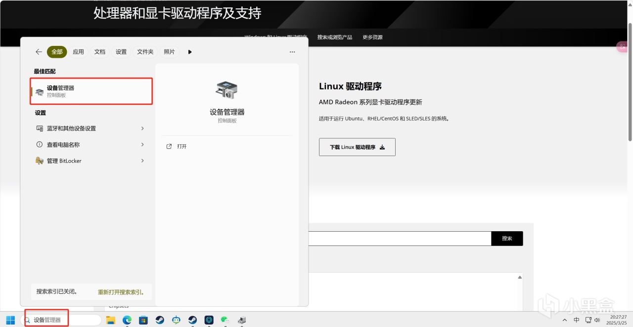 4.如果不知道自己顯卡型號則左下角搜索設備管理器打開