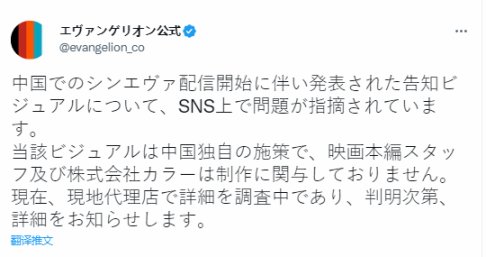 对此事件,福音战士日本官方发布声明,表示未参与中国内地海报制作