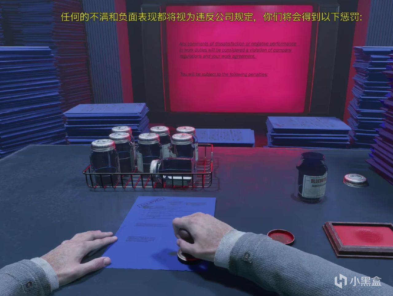 比如一些地方,僅僅通過幾行話就能讓社畜玩家冷汗直流。在一次次荒誕的重複中,你只想安分的做個蓋章仙人,但不近人情的大手無可商榷的墜落,打斷你一切可能安穩的妄想,冰冷的語句警告所更新的規定,壓斷了你最後一根神經。