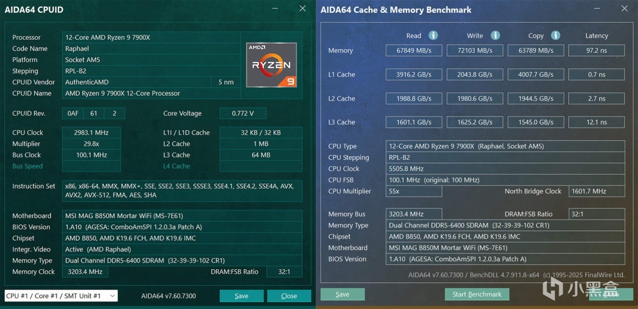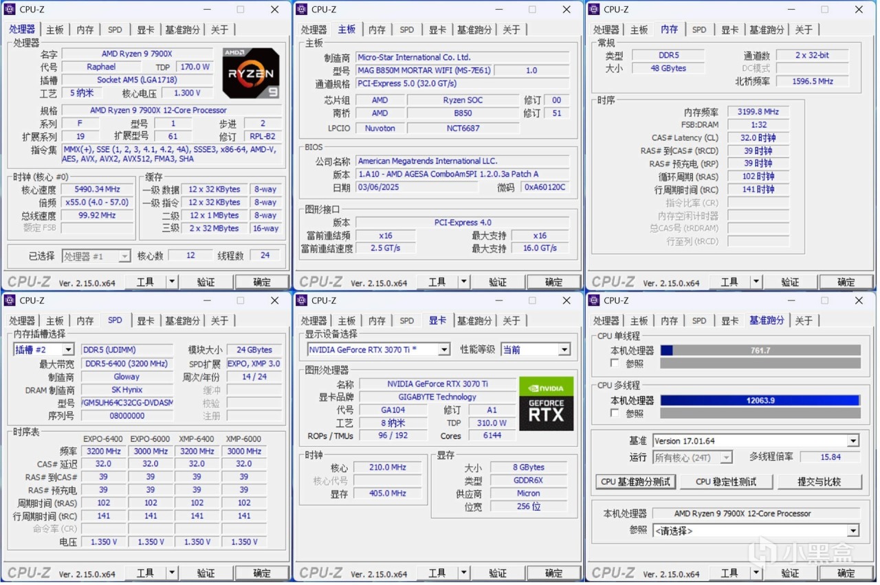 MAG B850M MORTAR WIFI主板依然採用了AM5接口,支持從銳龍7000繫到9000系的桌面處理器。我這次裝機用到的是一顆Ryzen 9 7900X,12核心24線程,基準頻率4.7GHz,可以加速到5.6GHz。