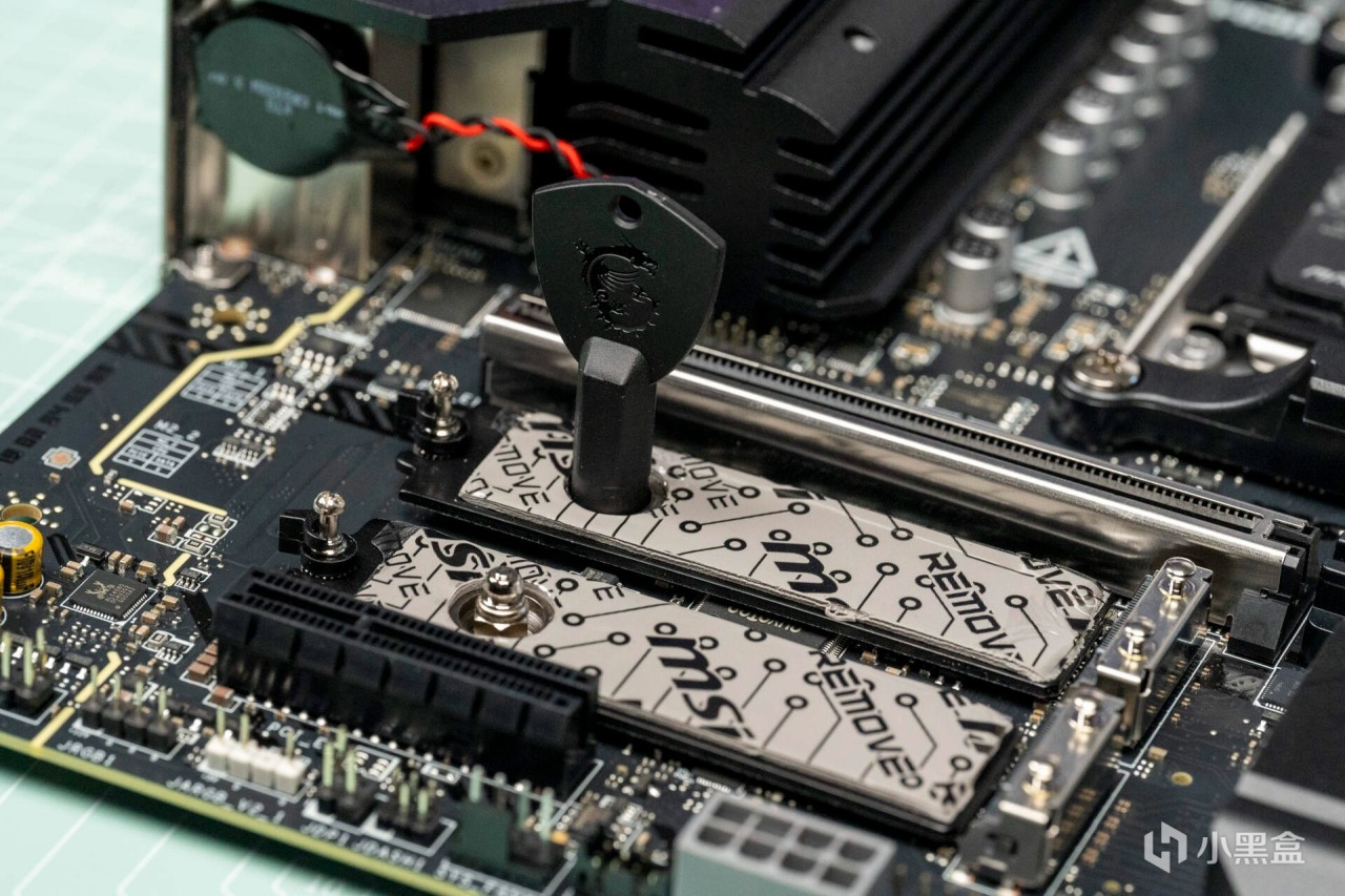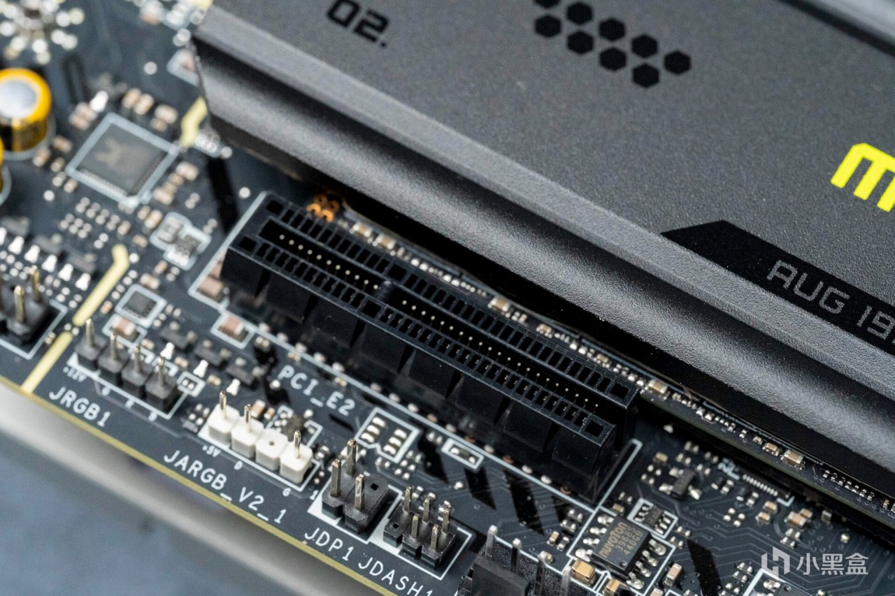 微星給顯卡安排了一條PCIe 5.0×16規格的PCIe插槽,由處理器直出,可以讓老黃的RTX50系顯卡和蘇媽的9000系顯卡滿血運行。並且插槽採用了合金加固和快拆的設計。