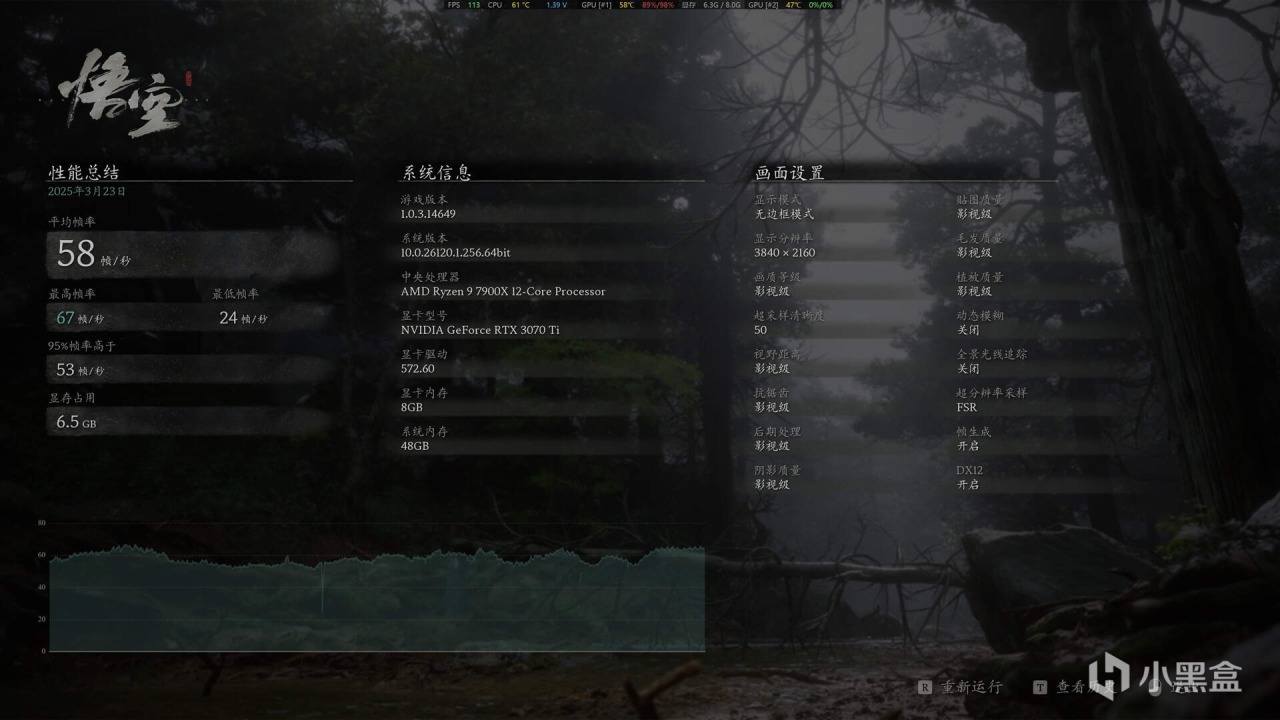 《黑神話:悟空》4k影視級畫質測試,平均幀率約爲58fps。