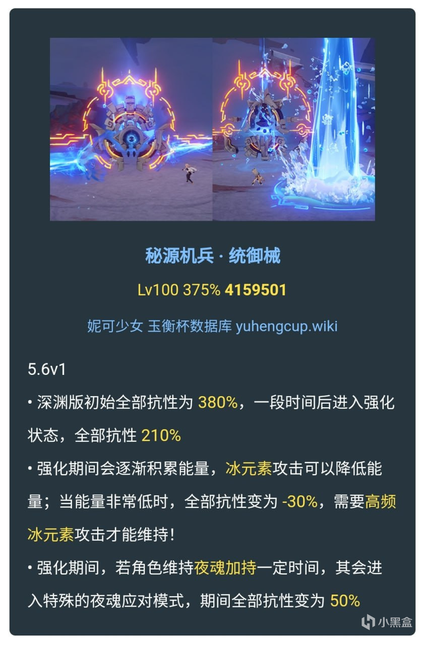 強化期間會逐漸積累能量,冰元素攻擊可以降低能量;當能量非常低時,全部抗性變爲-30%,需要高頻冰元素攻擊才能維持!
