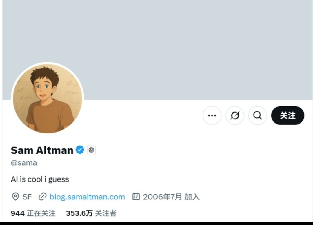 甚至連OpenAI的CEO薩姆·奧爾特曼也將他的新頭像設置爲吉卜力風格的圖片。
