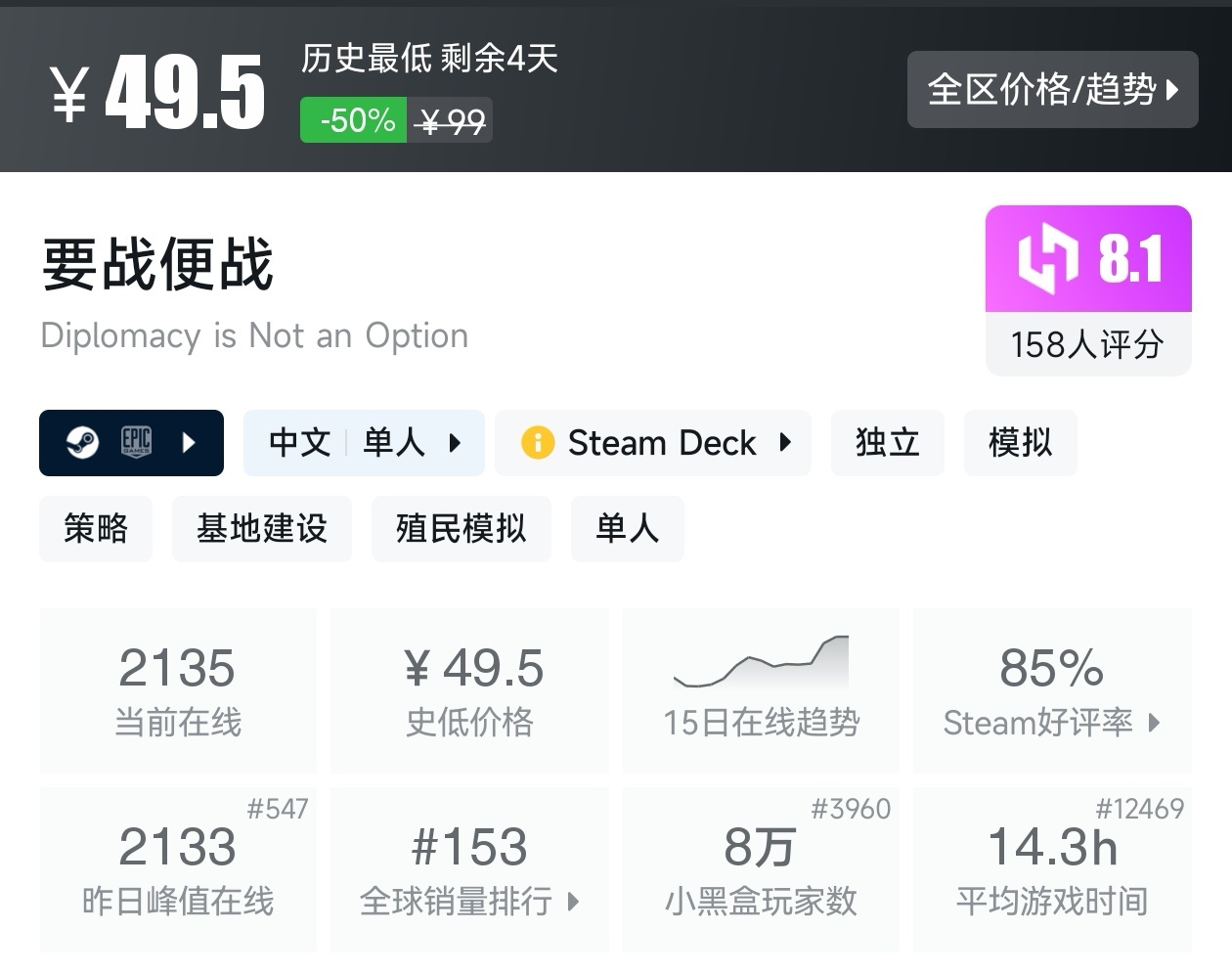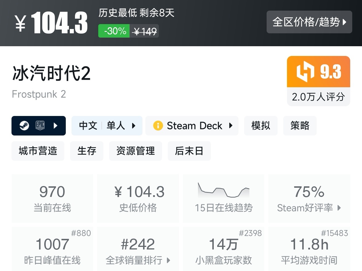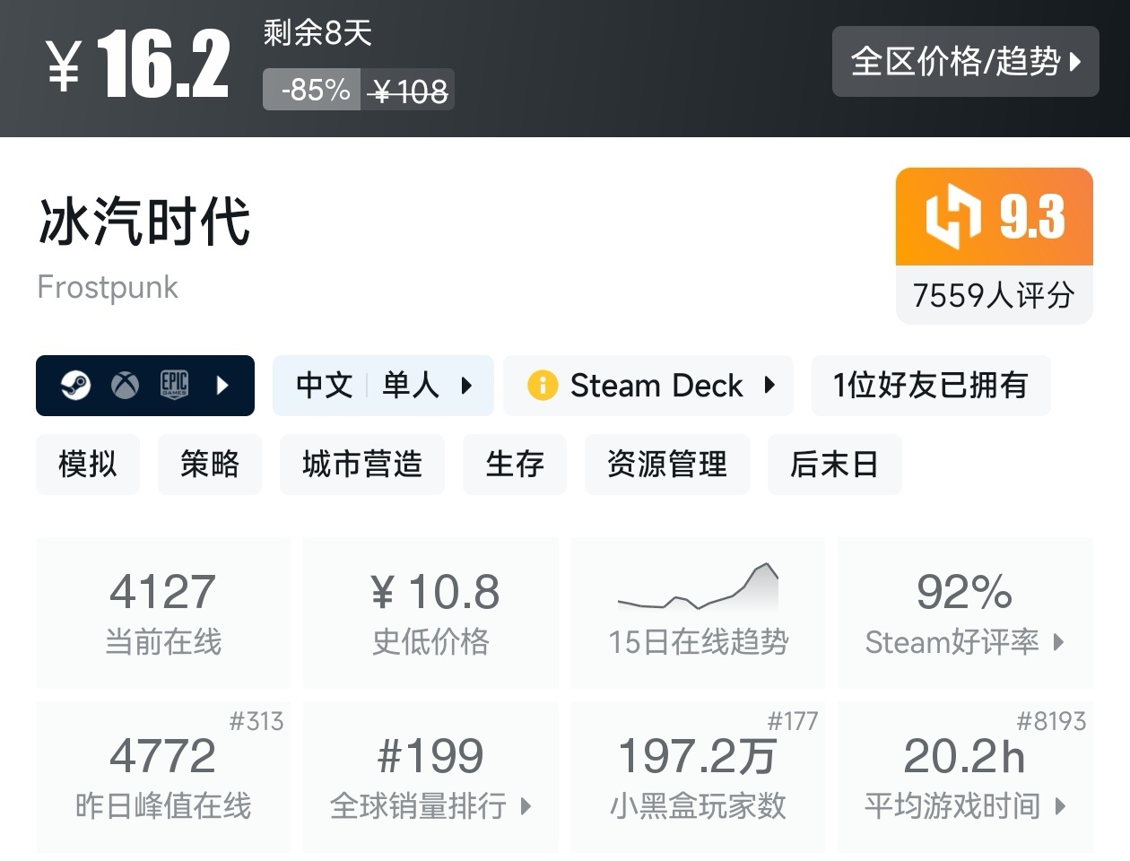 以上就是这期的折扣汇总了,其实这期虽然游戏数量看起来很少,但是用了我相当长的时间,为什么呢,因为我这期还是做的游戏节相关的,统计的基本都是与城市营造与殖民模拟游戏节紧密相关的游戏,所以有些不能照顾到的盒友请见谅。
