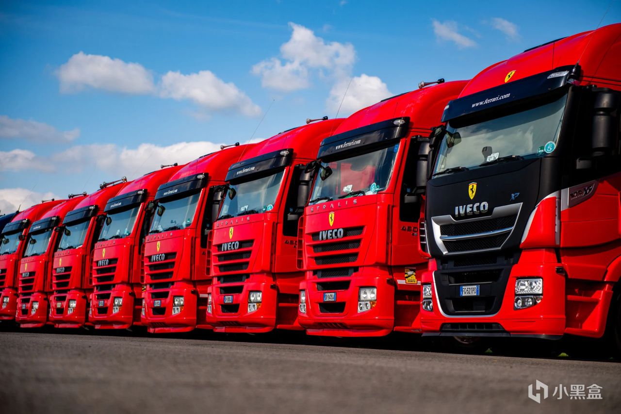 法拉利車隊長期與依維柯合作,2025年車隊運輸主力爲15輛依維柯Stralis Hi-Way牽引車,S-Way搭載Cursor13發動機,最大500馬力,塗裝爲法拉利標誌紅色,車頭部分添加躍馬標識,凸顯車隊身份,主要用於歐洲及全球賽事運輸,值得一提的是,2025賽季法拉利還特別購入了一輛依維柯電動車型eDaily廂式貨車,用於工廠物流業務,進一步推動綠色運輸。