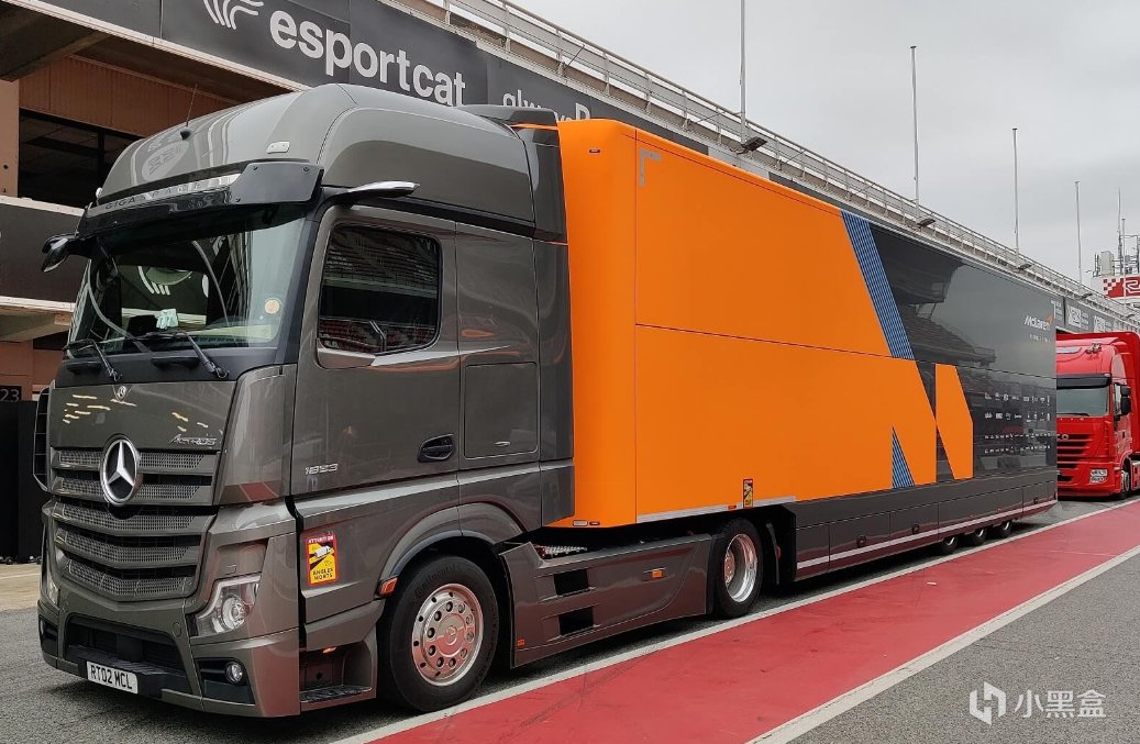 採用梅奔引擎的邁凱倫車隊,同樣也是選擇Actros MP4,只是塗裝改成了邁凱倫經典的木瓜橙。