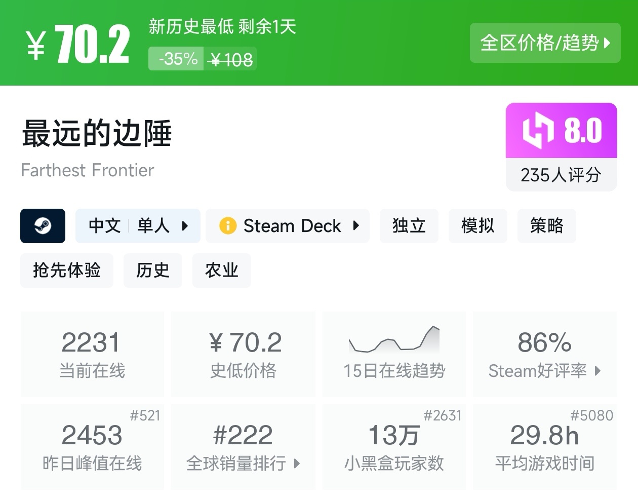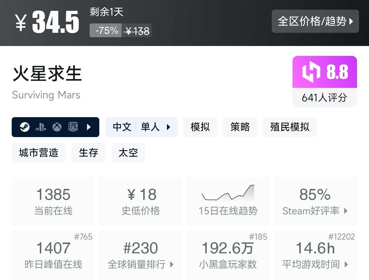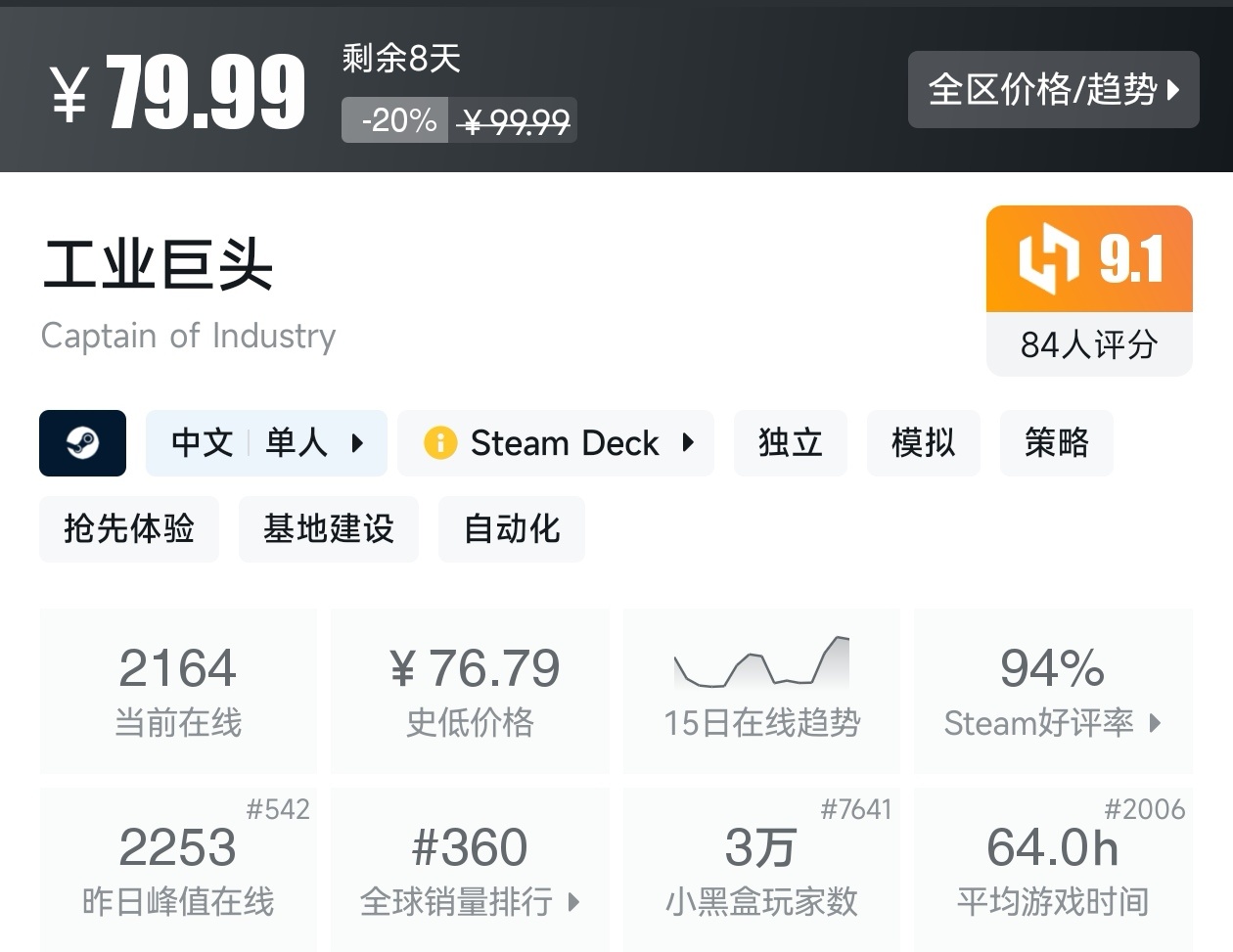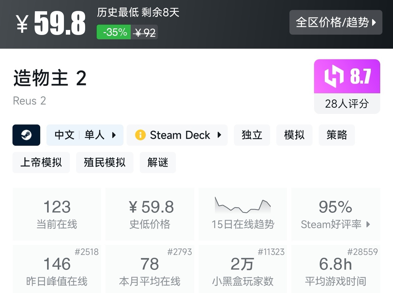 以上就是這期的折扣彙總了,其實這期雖然遊戲數量看起來很少,但是用了我相當長的時間,爲什麼呢,因爲我這期還是做的遊戲節相關的,統計的基本都是與城市營造與殖民模擬遊戲節緊密相關的遊戲,所以有些不能照顧到的盒友請見諒。