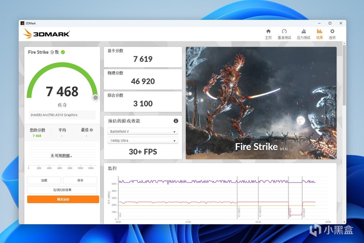 其次是DX11遊戲,對應英雄聯盟這類老遊戲,正常使用3DMark的FireStrike模組評估,測試結果如下圖所示: