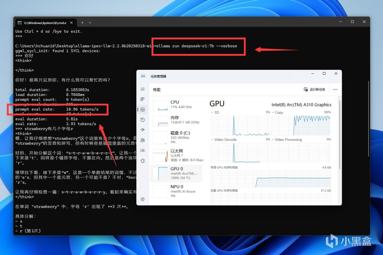最後是大火的AI,Ollama本身就帶數據統計,執行運行代碼時候後綴加上--verbose,隨便問個問題就能顯示推理速度,測試結果如下圖所示: